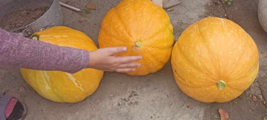 ещё на вкус не пробовали , яркая такая тыква)🥰 с 4 куста , 16 штук. самая крупная 6 кг.