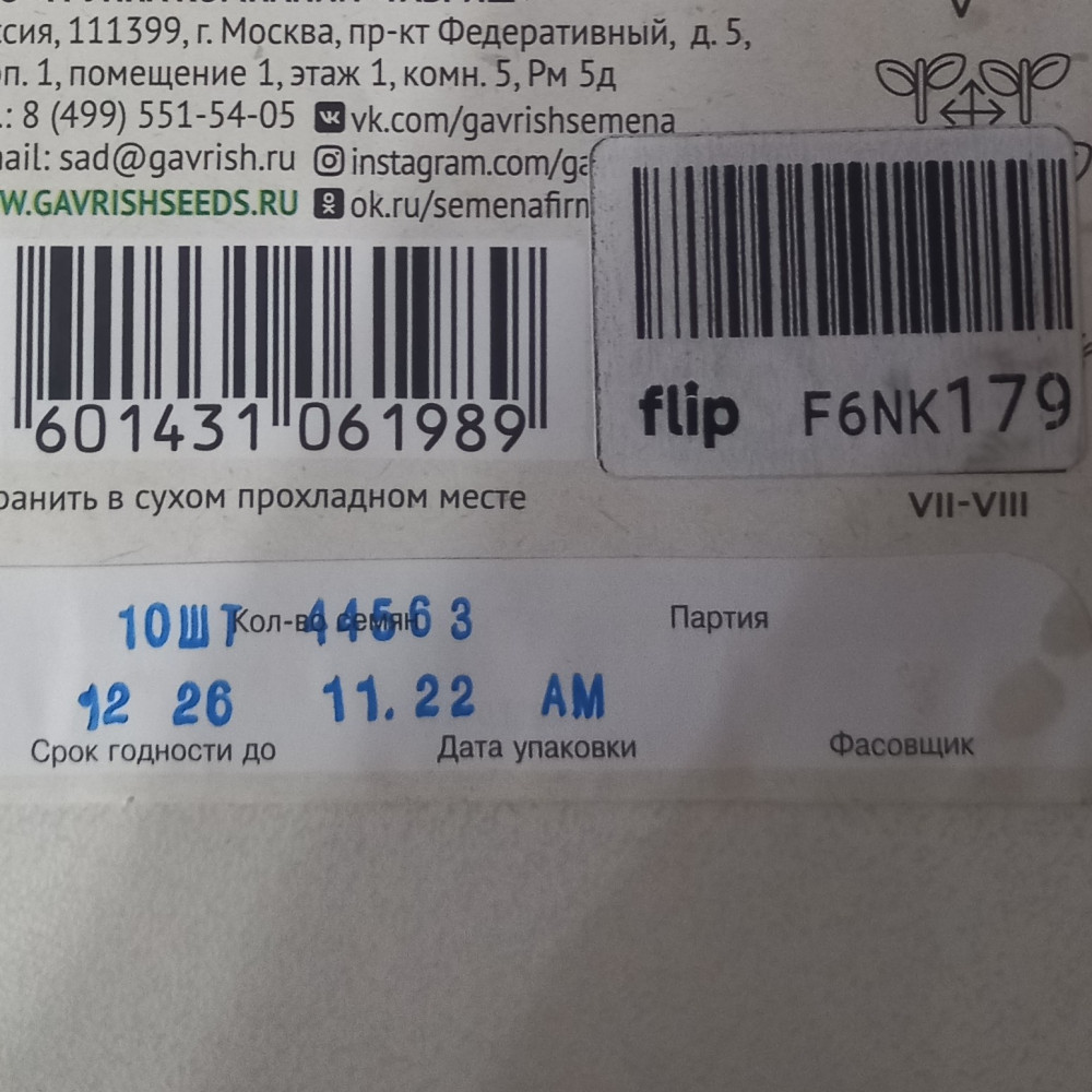 заявлено количество семян 20шт, а пришла упаковка с количеством 10 шт семян.
