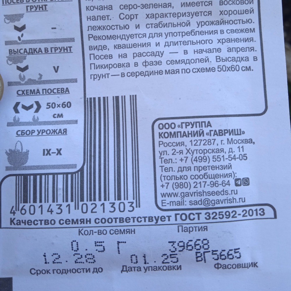 ![]() | Гавриш Семена. Капуста белокочанная «Подарок»+5