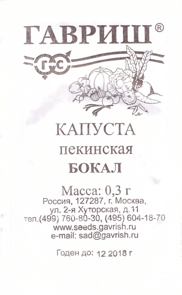 Гавриш Семена. Капуста пекинская «Бокал», 0,3 г+5