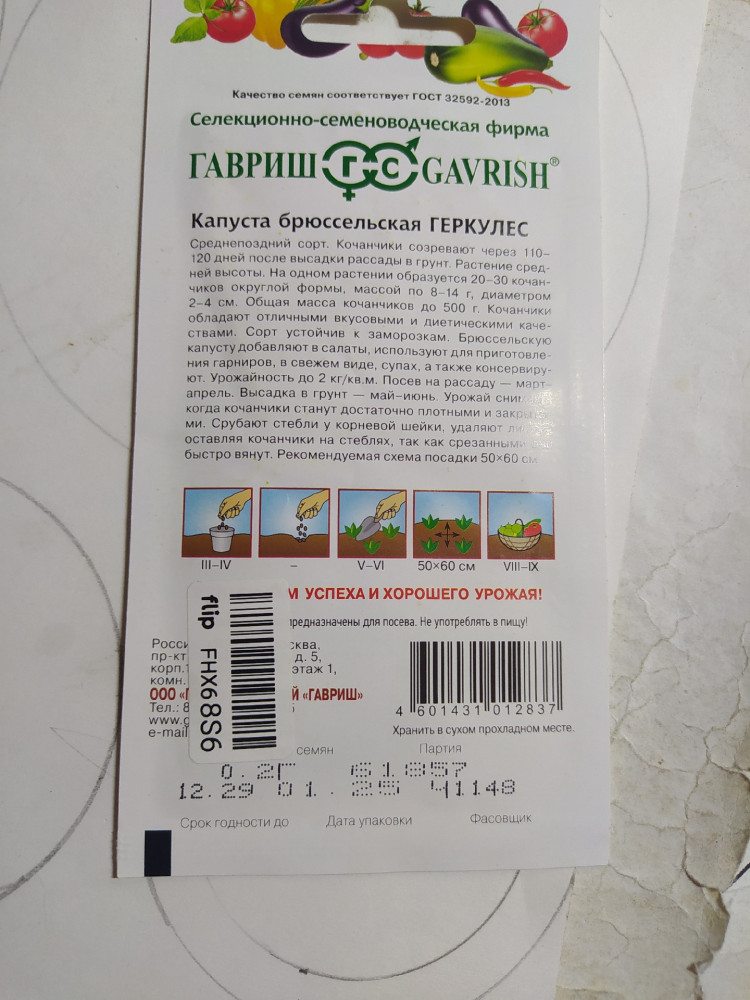 Гавриш Семена. Капуста брюссельская «Геркулес»+4 качество семян урожайность рост растений низкая цена