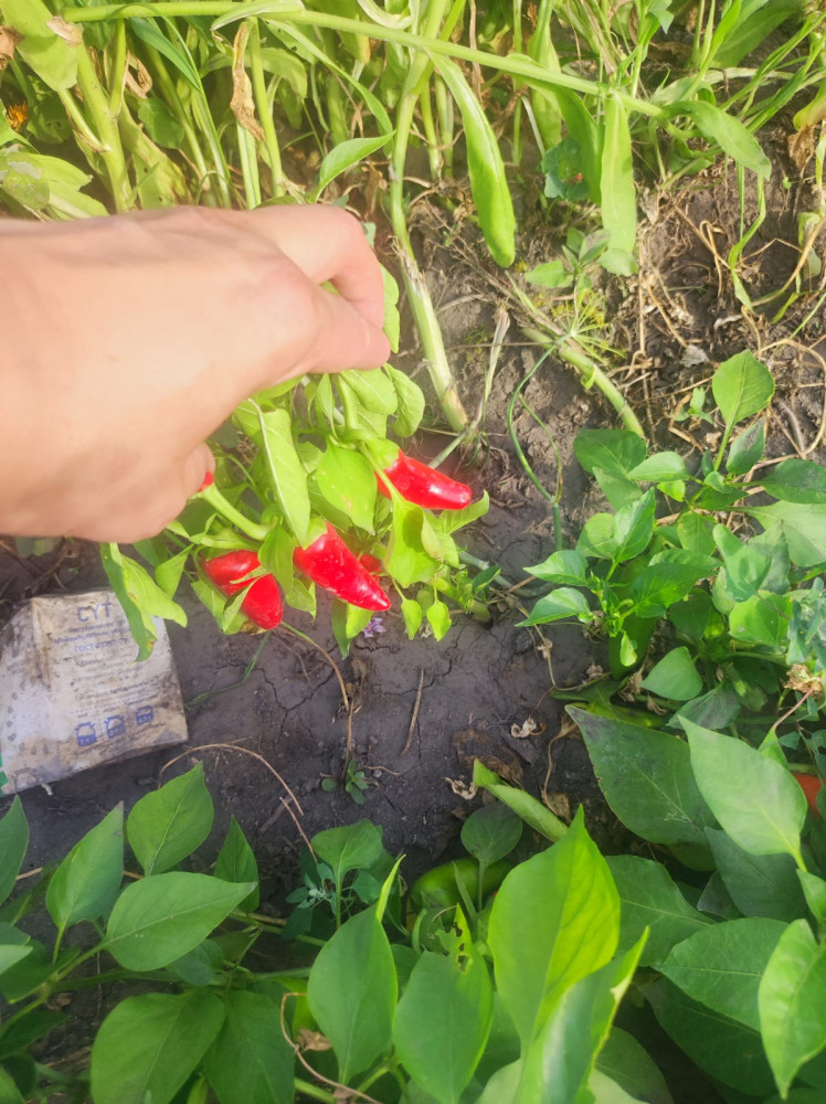 Взошли хорошо, на кусту много плодов. Уж очень маленькие перчики, самый большой вырос 3-4 см.