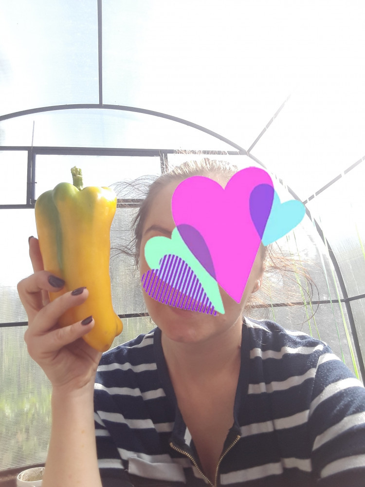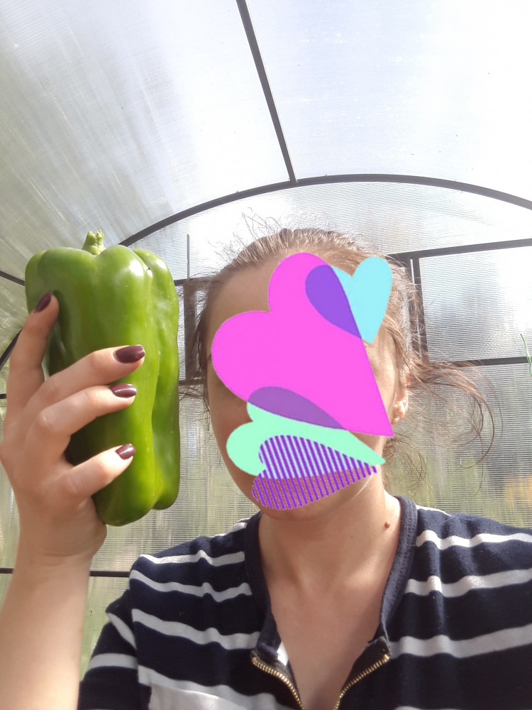 Очень хорошее плодоношение. В данное время на кусте штук по 7-8 крупных перцев и продолжает цвести. Правда дозреть не даем, срываем зелеными. Под притенением укрывным материалом у нас растет лучше, чем на открытом солнце.