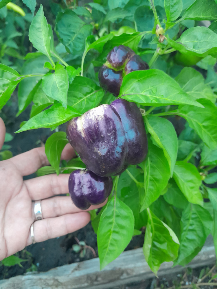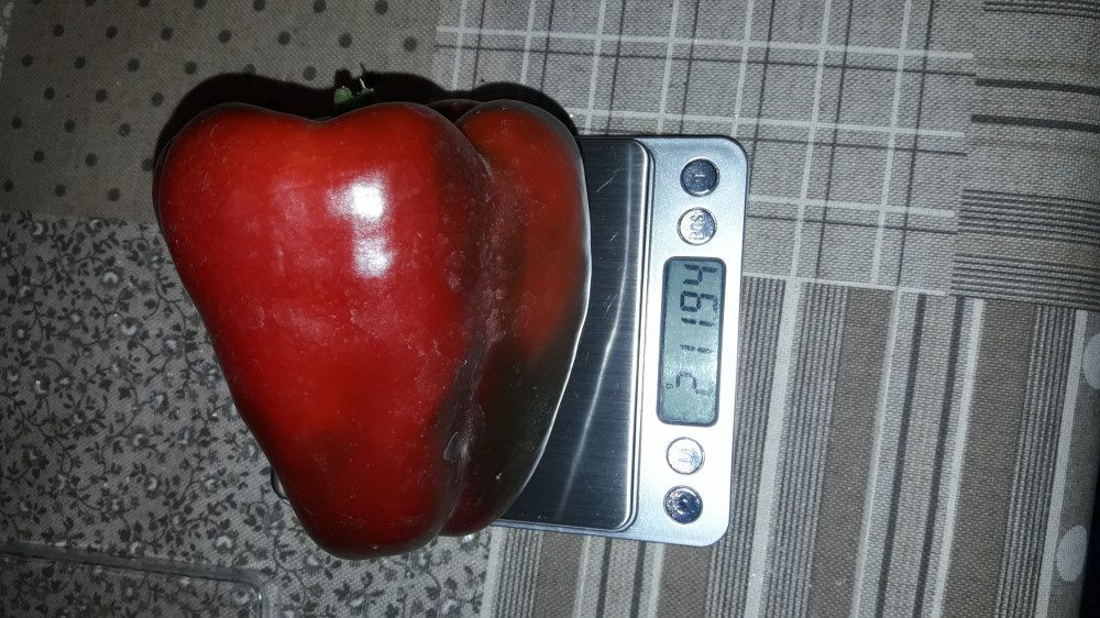 Отличный сорт. В биоспелости вишнево-красные. Урожайные и крупные сладкие, сочные перцы. Не ранний, но и не сказать чтобы сильно поздний. Сажала на рассаду 12.03, всхожесть была отличная (свежие семена), пикировка в начале апреля, в грунт 11.05 - был очень теплый и ранний май (обычно после 20-го мая), дней 5 стоял под укрывным, когда было похолодание с сильными ветрами в конце мая-начале июня до +5 ночных. Куст раскидистый, но не сильно высокий, хорошо облиствленный, листья темно-зеленые довольно крупные. Перчины крупные и мясистые. В биоспелости я пару штук снимала с начала августа, таких вот сняла штуки 3 с одного куста сегодня 11.08, то есть пошло массовое поспевание.