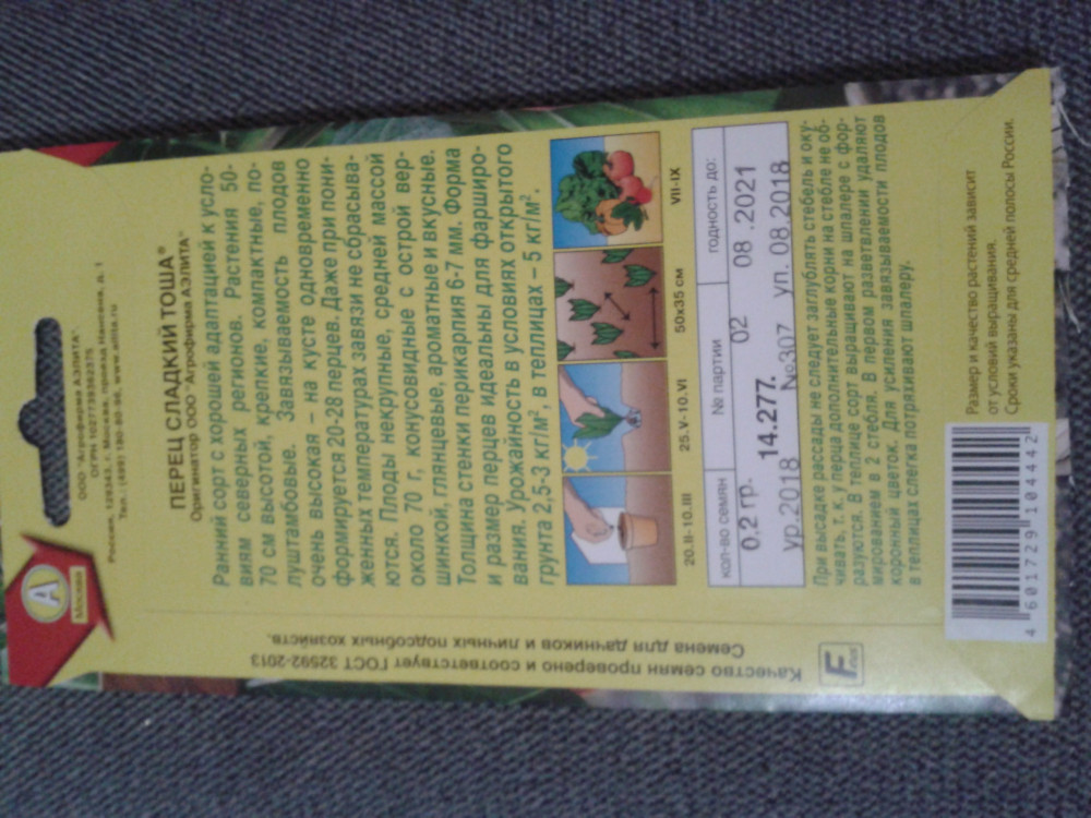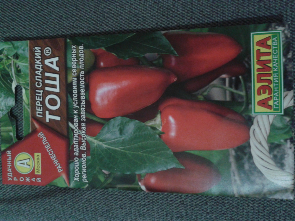 Аэлита Семена. Перец сладкий «Тоша»В данный момент этот товар отсутствует в продаже. Возможно, у нас найдется аналогичный или похожий товар здесь. Серия: Удачный урожай Новый раннеспелый сорт с хорошей адаптацией к условиям северных регионов. В средней полосе можно выращивать в открытом грунте. Растения 50-70 см высотой, крепкие, компактные, полуштамбовые. Завязываемость плодов очень высокая – на кусте одновременно формируется 20-28 перцев. Даже при пониженных температурах завязи не сбрасываются. Плоды некрупные, средней массой около 70 г, конусовидные с острой вершинкой, глянцевые, ароматные и |