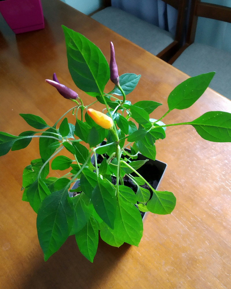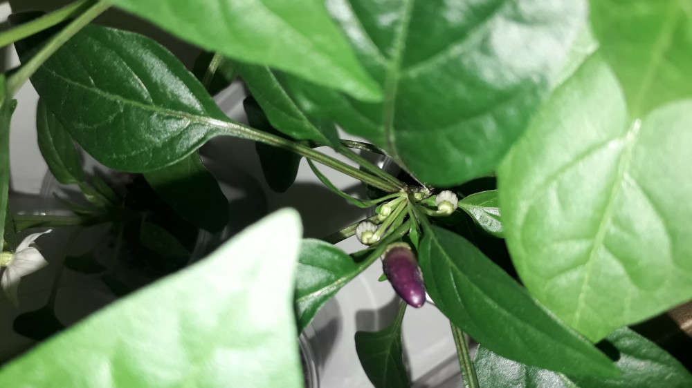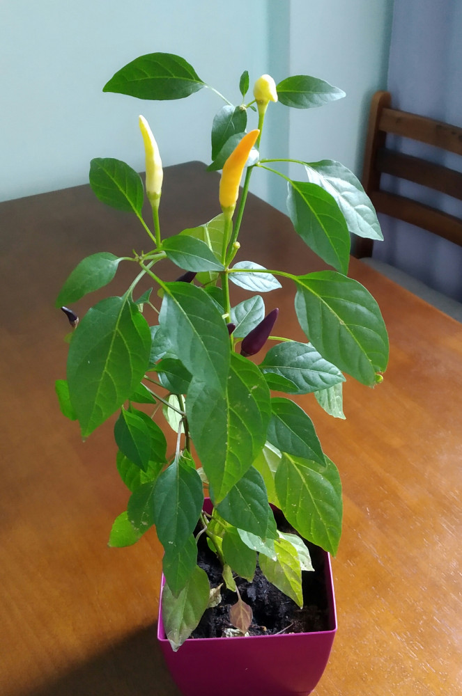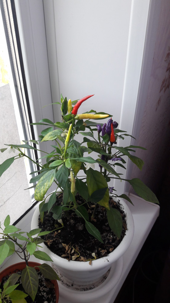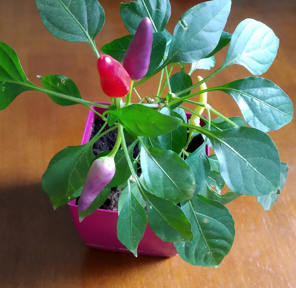 Хороший перчик. Взошло 4 семечка. Вышел цвет фиолетовый и жёлтый, но когда поспеет все красные. Муж попробовал сказал, что хороший острый перчик.