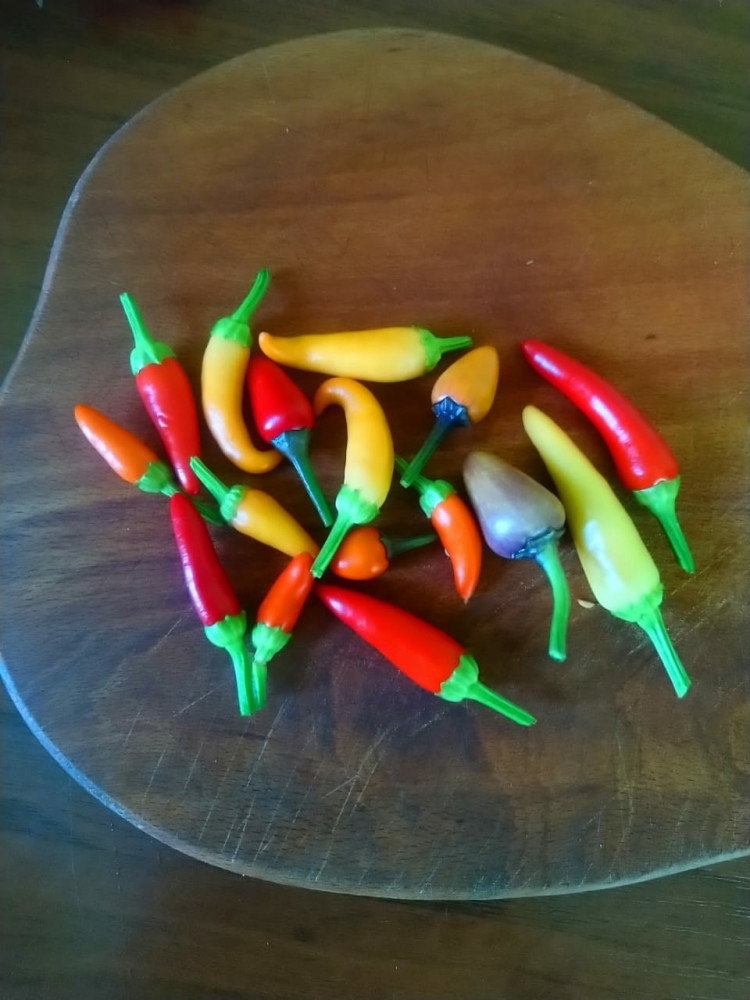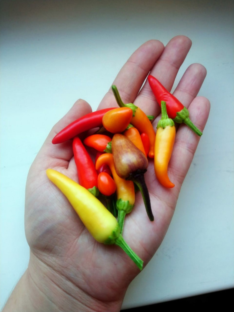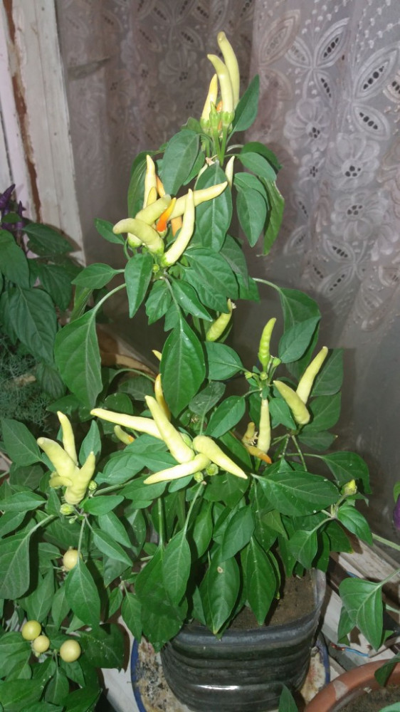 Садили в прошлом году. Всхожесть семян хорошая. Перцы правда выросли все одинаковые - красные удлиненные. Сами растения очень декоративные, должны отлично смотреться в горшках. Очень острый, жгучий перец. Использовали при консервировании огурцов.