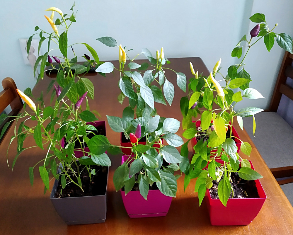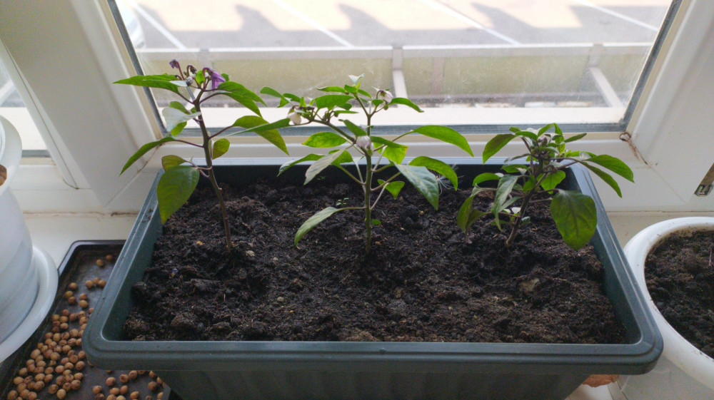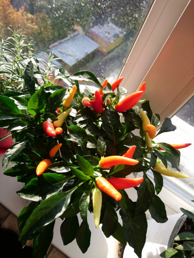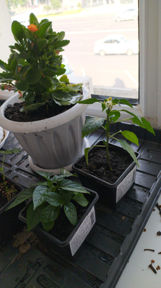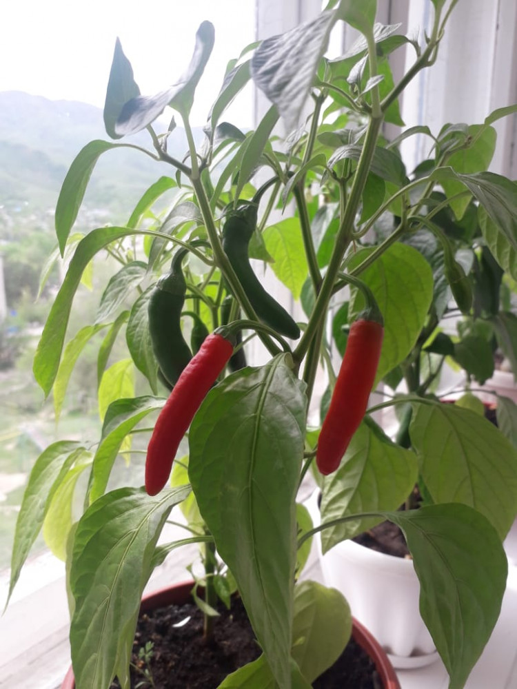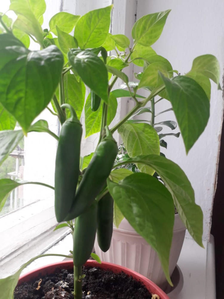 Перчик весь взошел. Очень красиво смотрится на окне. На вкус пока не пробовали
