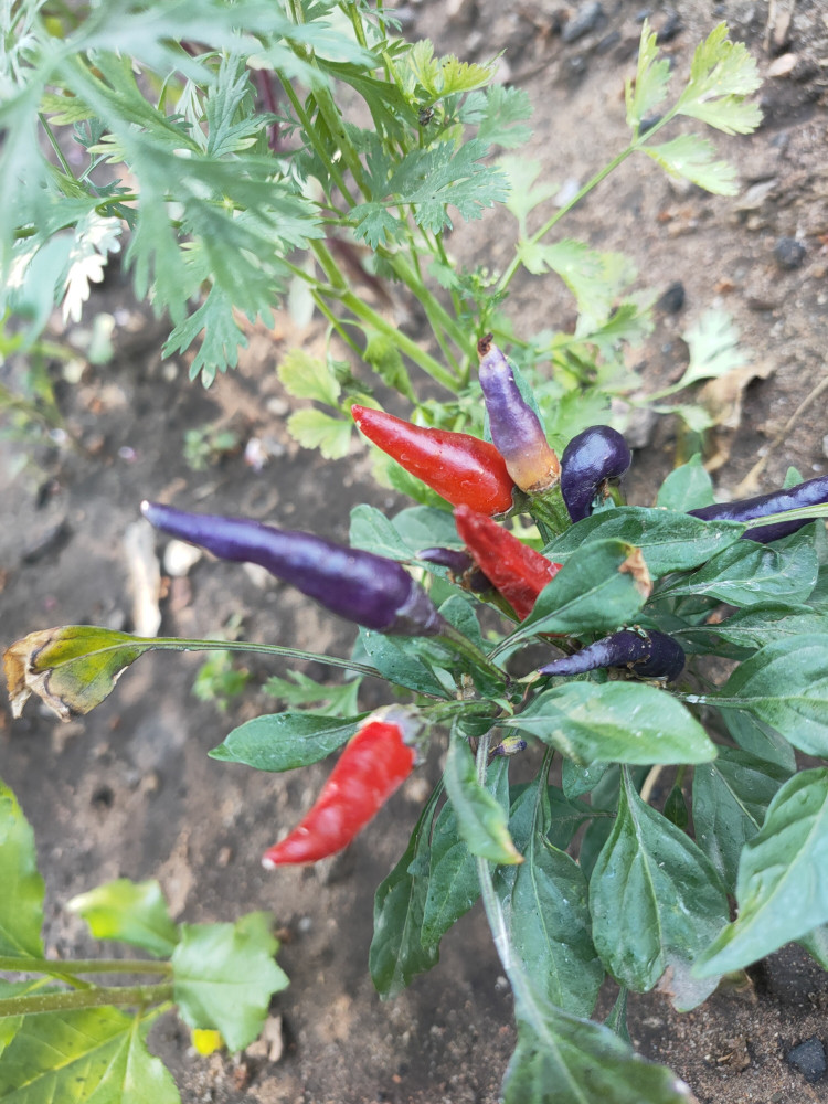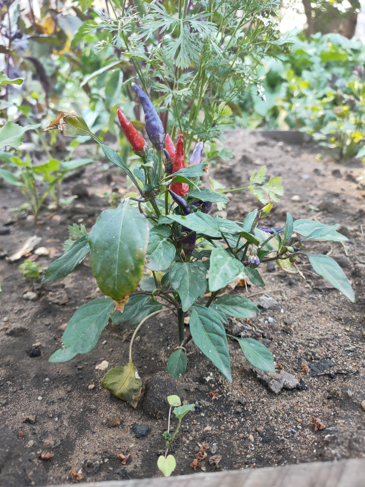 Вырос целый огород из одной пачки семян. Примечательно, что на одном растении перчики разной окраски.