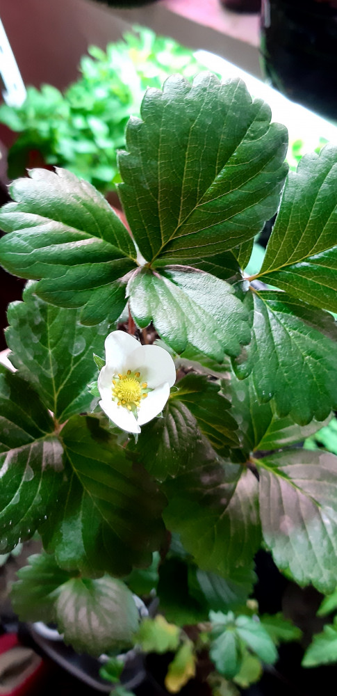 Сеяла в конце января, сейчас в начале апреля уже цветёт и выпустила много усов. Взошли и растут все 5 шт. Пересадила в горшки на улицу, до этого росли дома под лампой. Посмотрим, какая будет урожайность.
