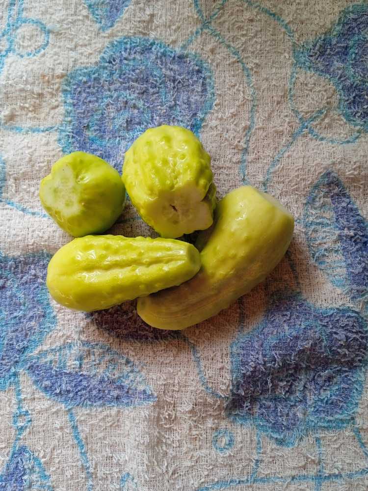 Твердая и толстая кожура. Выглядят необычно, особенно в засолке.
