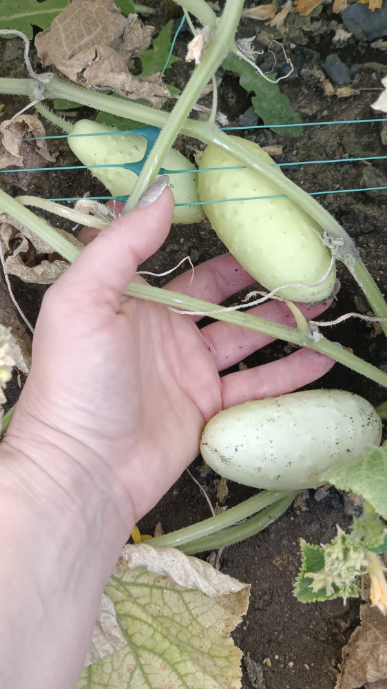 Брала в прошлом году, действительно огурчики удивили. Интересный цвет, было немало. Посолила на зиму. Спасибо!