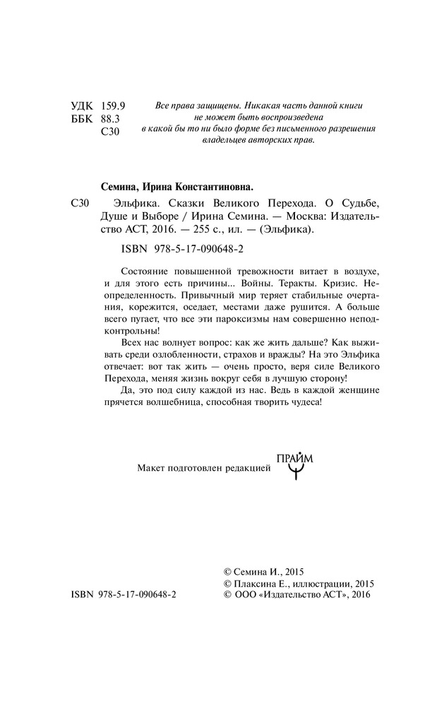 Эльфика. Сказки великого перехода. О Судьбе, Душе и ВыбореВ данный момент этот товар отсутствует в продаже. Возможно, у нас найдется аналогичный или похожий товар здесь. Состояние повышенной тревожности витает в воздухе, и для этого есть причины… |