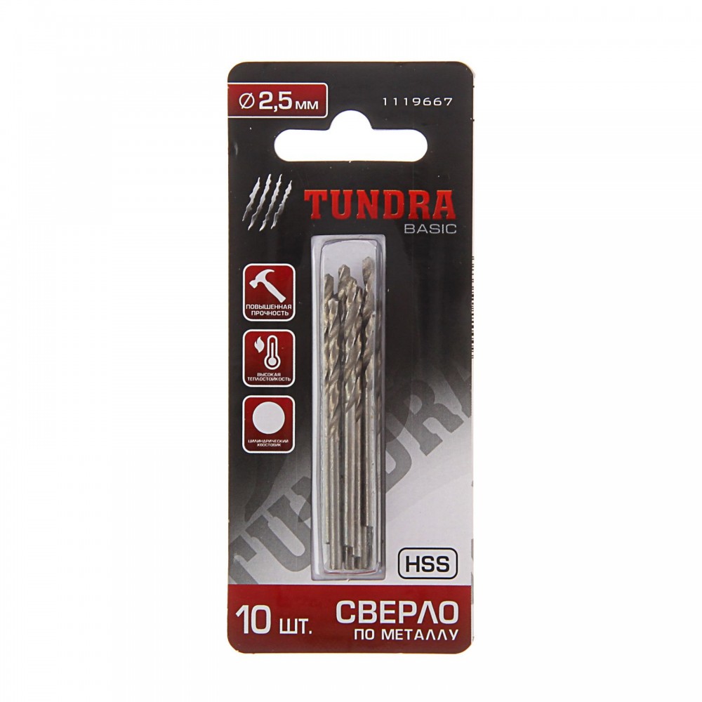 Tundra Сверло по металлу «TUNDRA basic» (набор 10 шт.) сталь HSS, 2.5 мм-35% +9