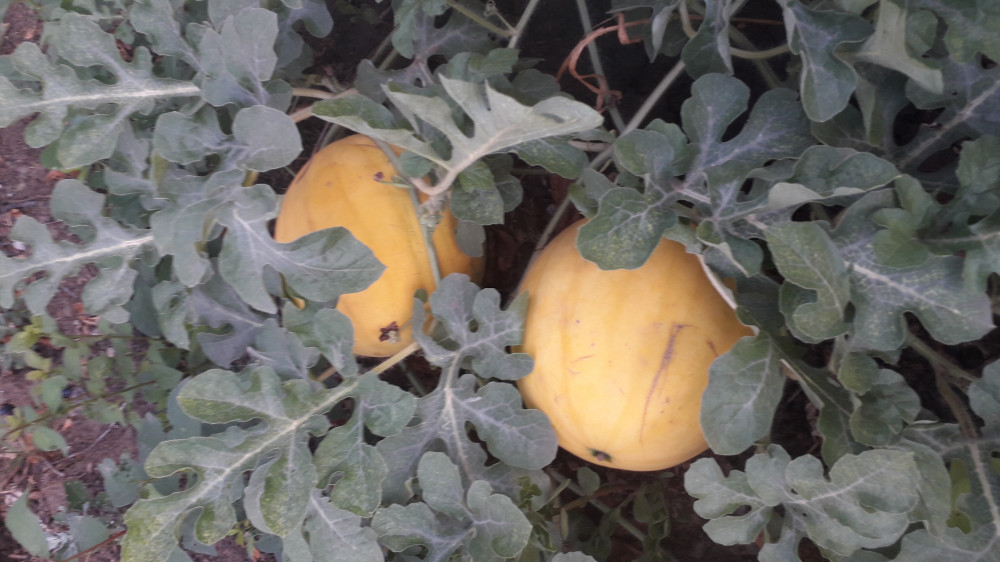 Очень оригинальный среднеспелый гибрид (от всходов до начала плодоношения 90-95 дней), предназначен для выращивания в открытом грунте и под временными пленочными укрытиями. Плоды округлые, кора ярко-желтая, массой 3-4 кг. Мякоть ярко-алая, нежная, зернистая, очень сладкая и вкусная.