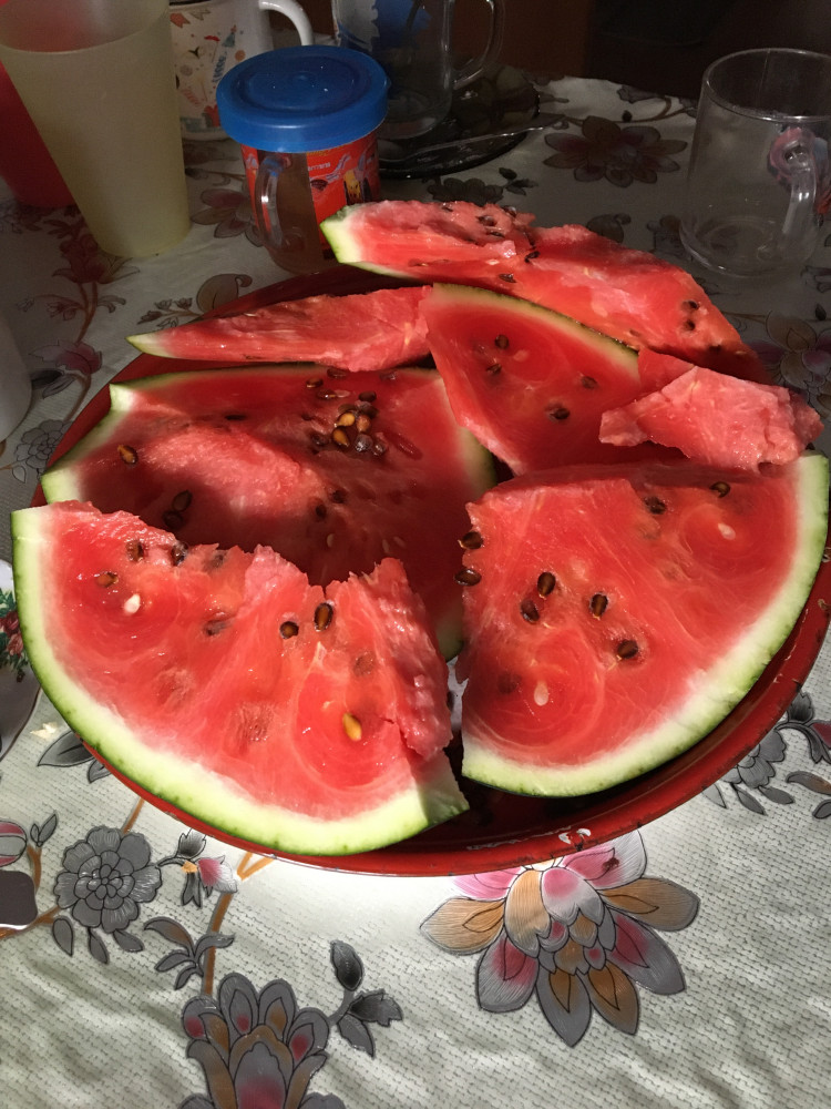 Арбузы выросли крупные! Первый 4,5 кг, а сегодня разрезали 5,5 кг , и ещё несколько на грядке. Вкусные, красные!