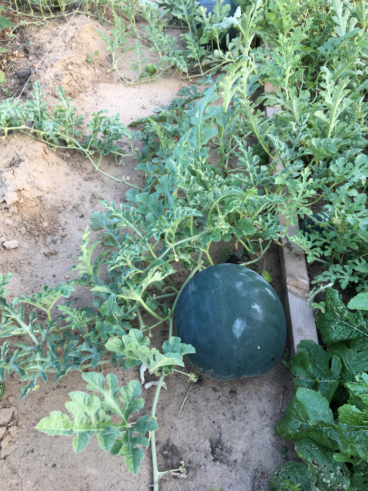 Сажала на рассаду почти в середине мая, поздновато купила семена, в грунт 2 июня, земля у нас голимый песок, что арбузам понравилось, видимо, дача на берегу Ишима,