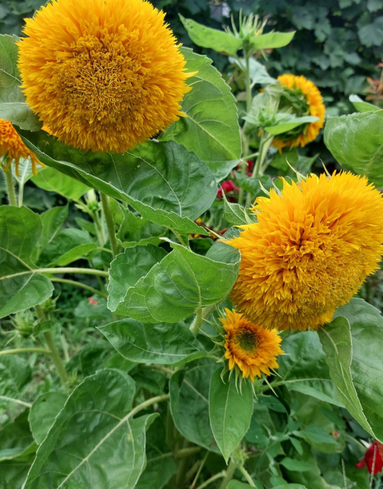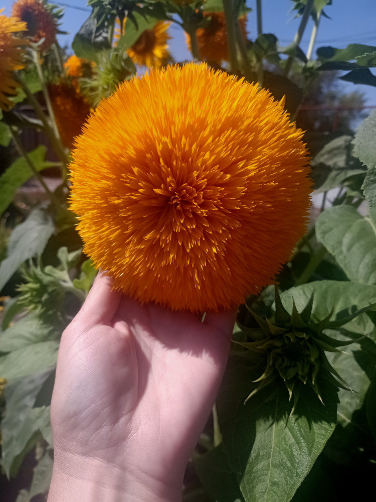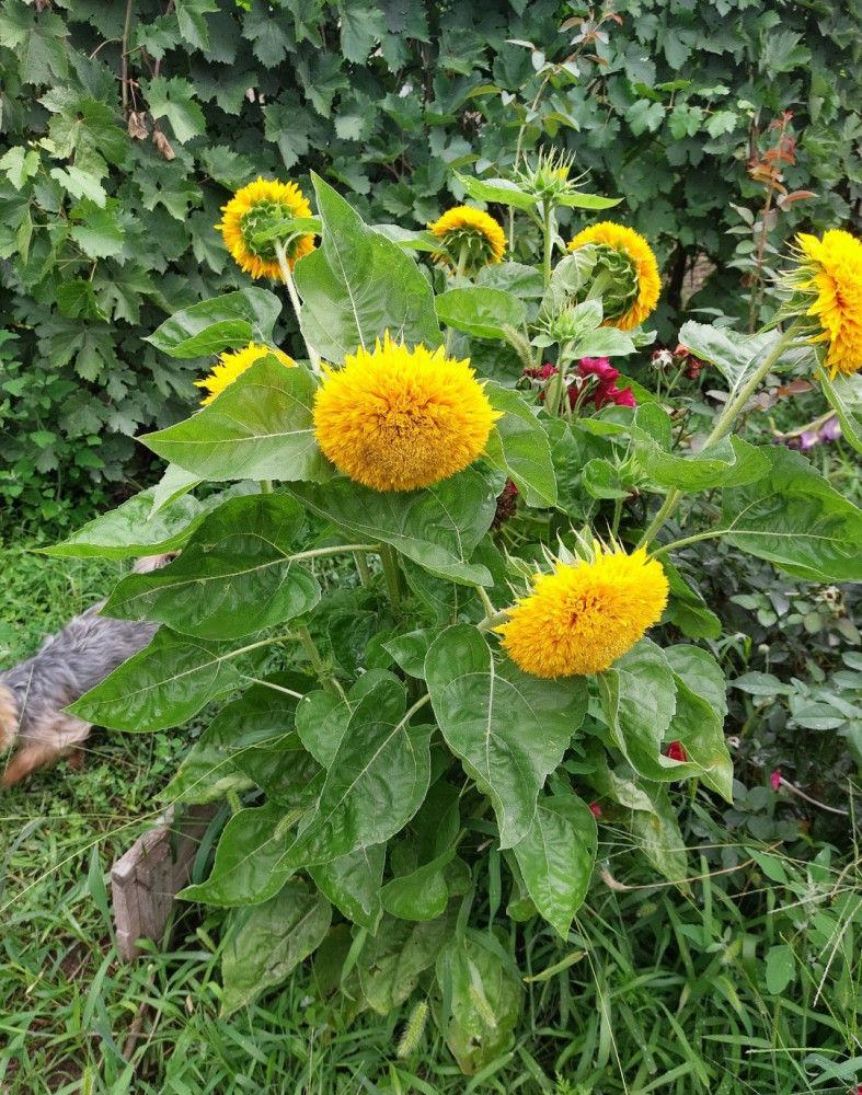Хорошо взошли, неприхотливые, но заявленных пушистых цветков всего ничего, остальные обычные подсолнухи, малодекоративные, высота от 1 м