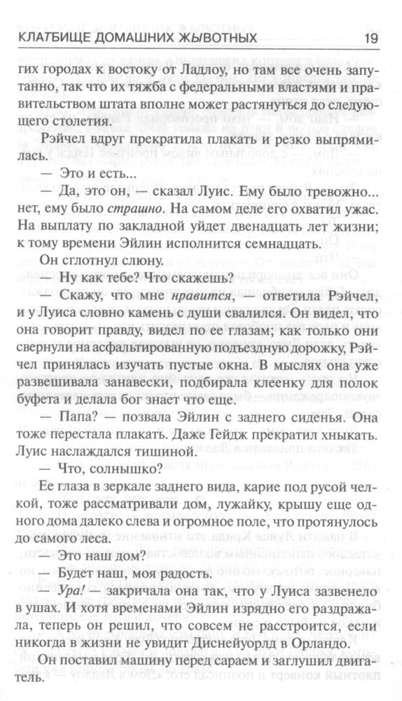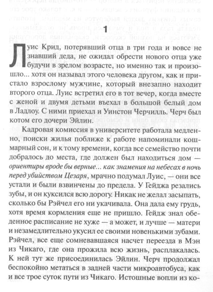 Впервые читала книгу в таком жанре. Было интересно чем же закончится все . Страшно особо не было , хотя Кинг говорит что это его самый страшный роман. Может он так думает , потому что за основу взята его история и история его семьи. И его страхи , а «если бы он не успел»…. Да , страшно не было , но было жалко … На любителя книга ) мне было интересно вот и прочла ) перекрутила старый фильм 1989 г , снятый по фильму . Персонажи , сюжет совпадает с книгой . Если бы прочла подростком , возможно для меня это было бы жутью ) возможно … Но книга довольна таки толстоватая )