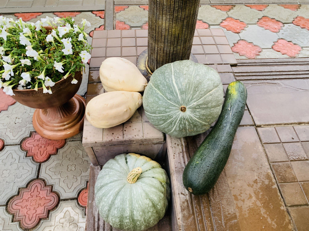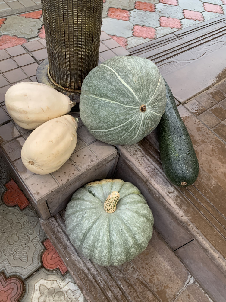Отличный кустовой сорт тыквы. Внутри ярко оранжевая, вкусная. На каждом кусту по одной тыкве выросло, тыква крупная, круглая. На фото самые большие, крутые, зелёные. Тяжелые. Выросло с трёх кустов - три тыквы.