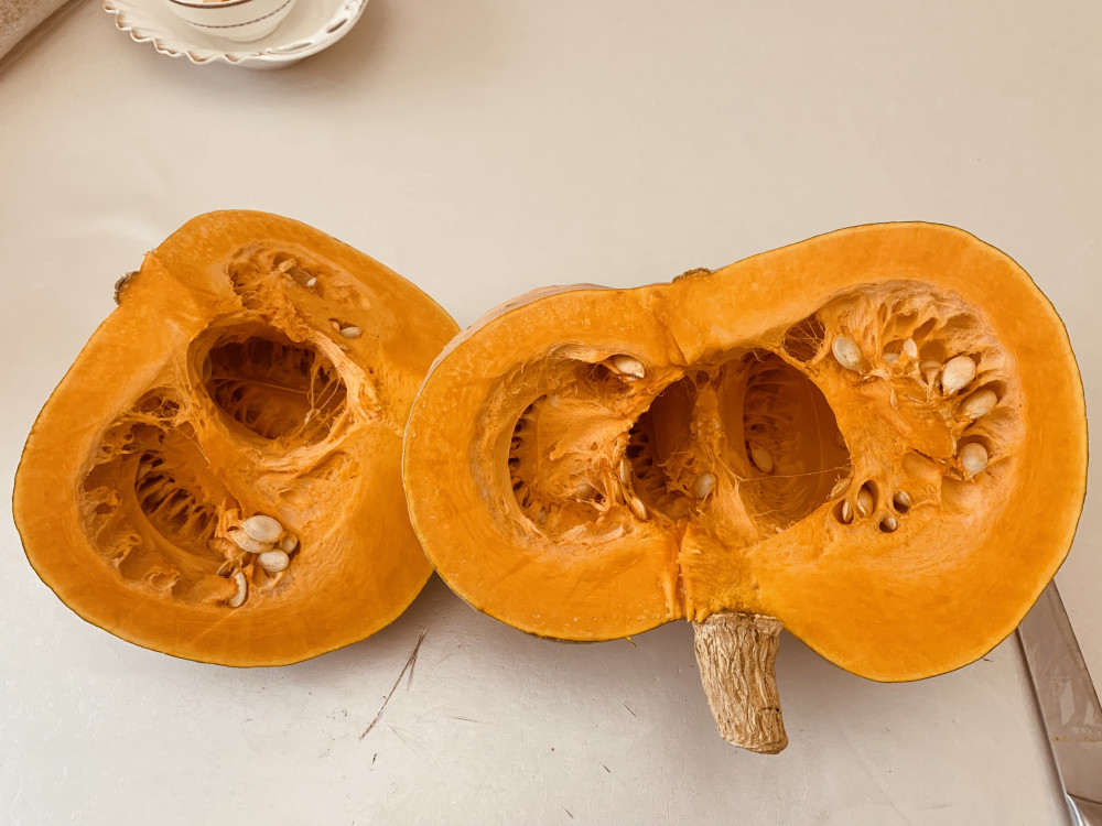 Тыква в разрезе, хранилась в погребе, состояние отличное. Сладкая, ярко-оранжевая, душистая. И даже снаружи немного оранжевая. 18 января 2023г