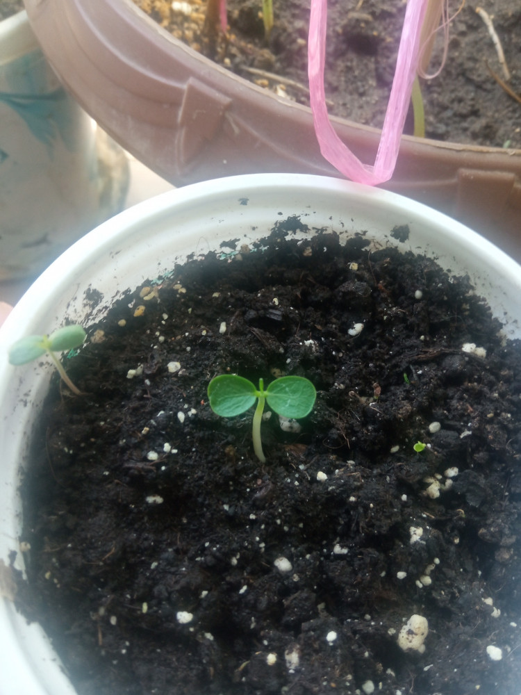 Взошли 2 из трех. Меньше, чем за неделю. Растут быстро. Чувствуют себя уверенно.