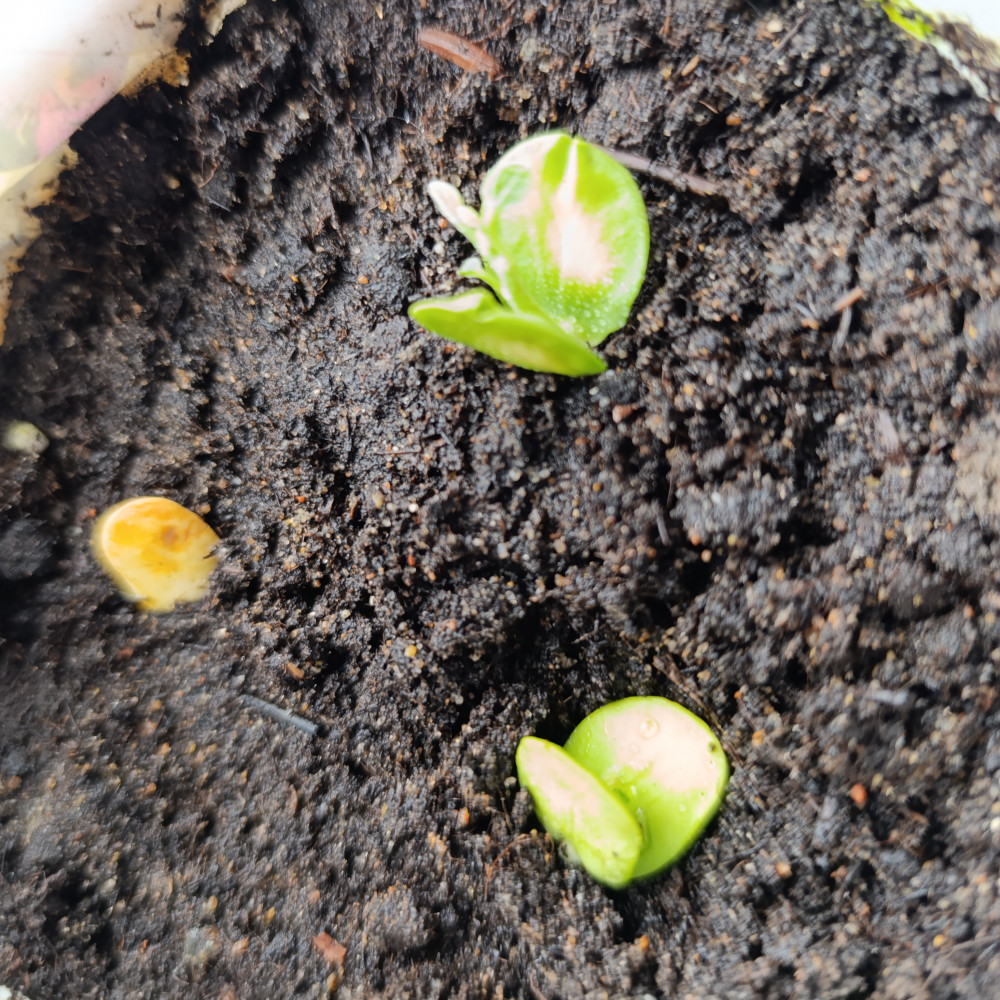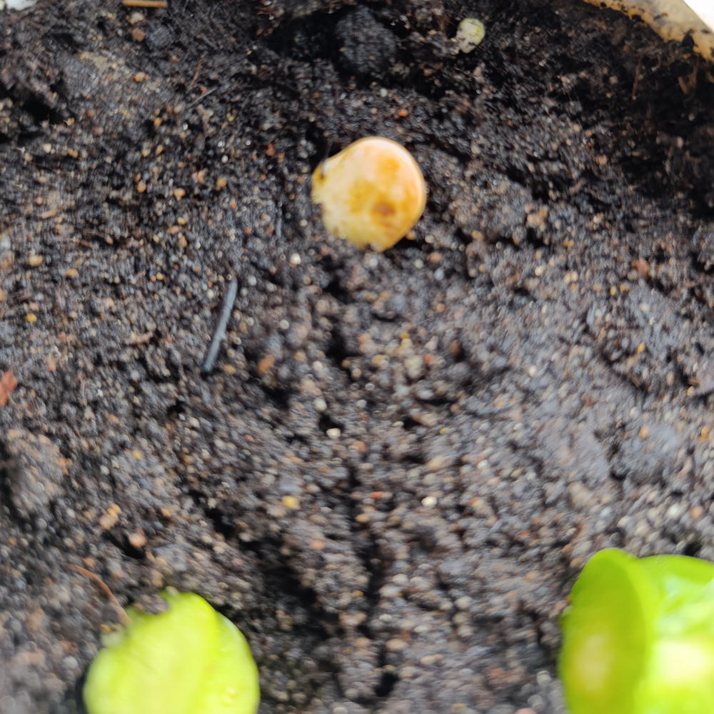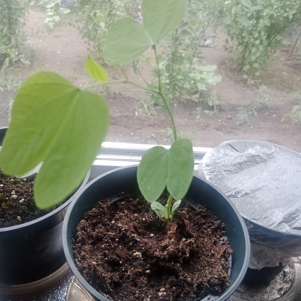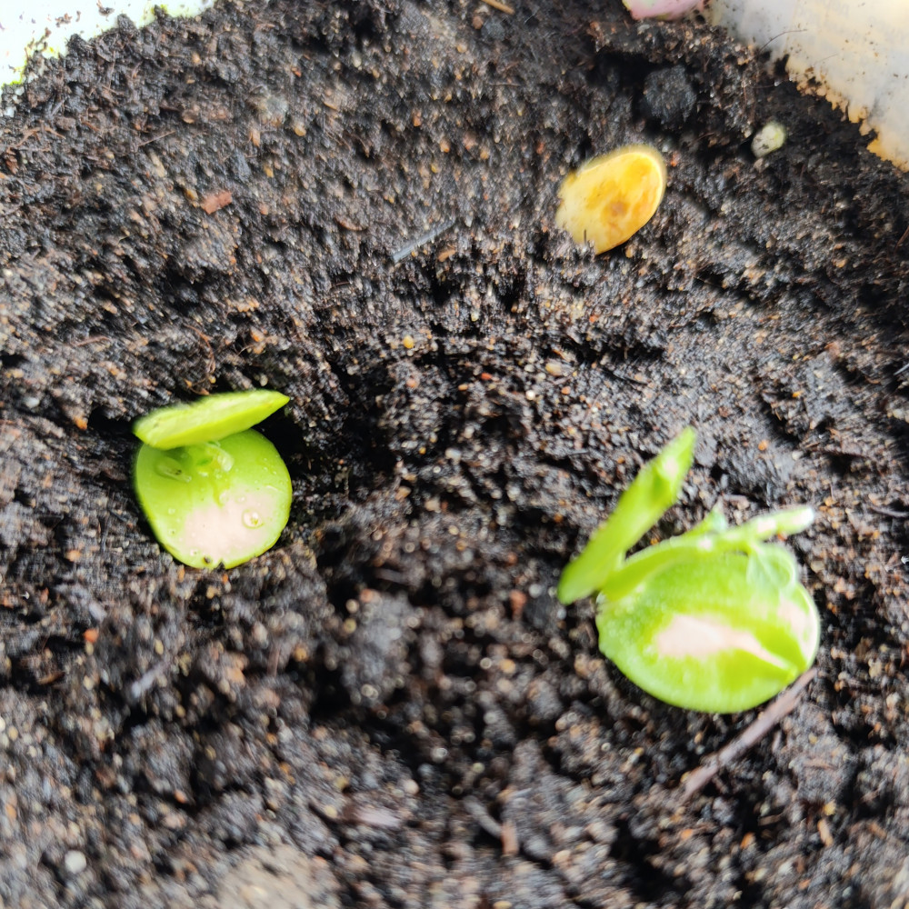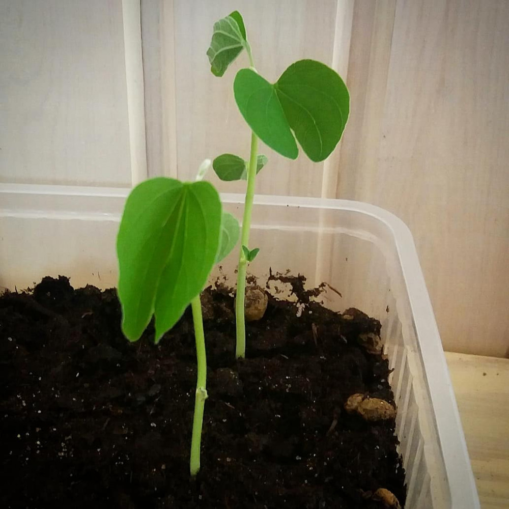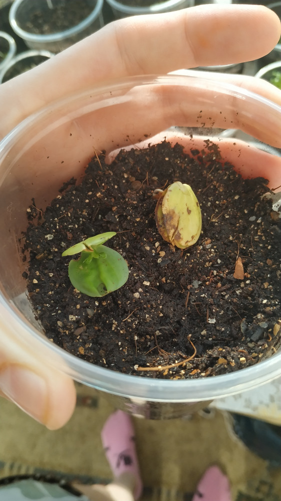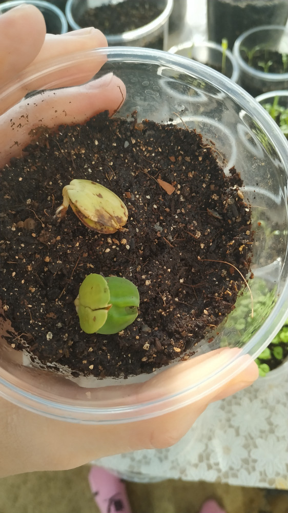 Интересные семена, с подушечку пальца взрослого человека, расплюснуты как блинчики))) Садите или по одному или в большую емкость, семидольные листики очень большие. Взошли все три семечка! Буду наблюдать дальше.