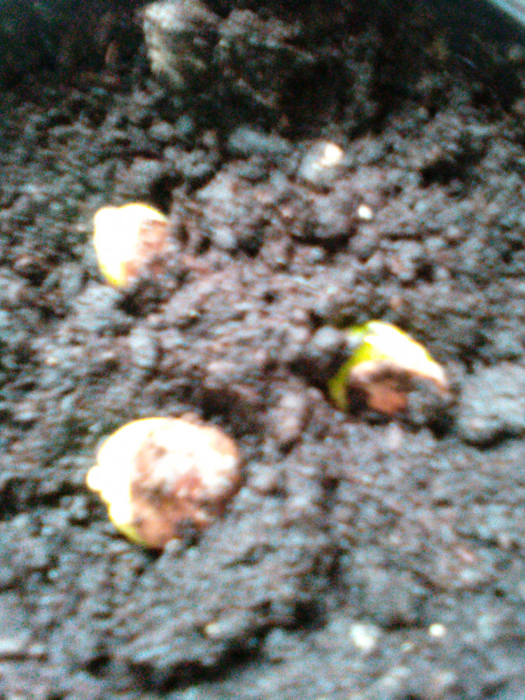 Взошли через 3 дня, все три семени, ни в коем случае не замачивайте и не скарифицируйте - сгниют. Семена хоть и большие, и оболочка крепкая, но всходят быстро. Глубоко не закапывать - примерно 0,5 см, грунт немного увлажнить.
