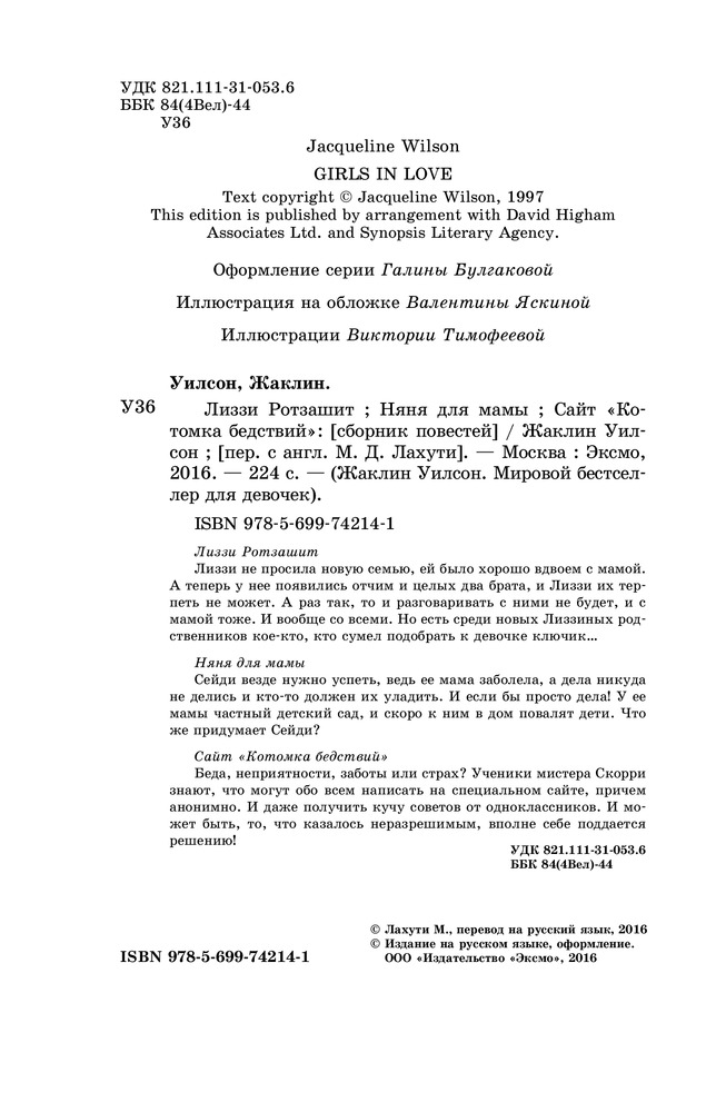 В данный момент этот товар отсутствует в продаже. Возможно, у нас найдется аналогичный или похожий товар здесь. Серия: Жаклин Уилсон. Мировой бестселлер для девочек Лиззи Ротзашит.