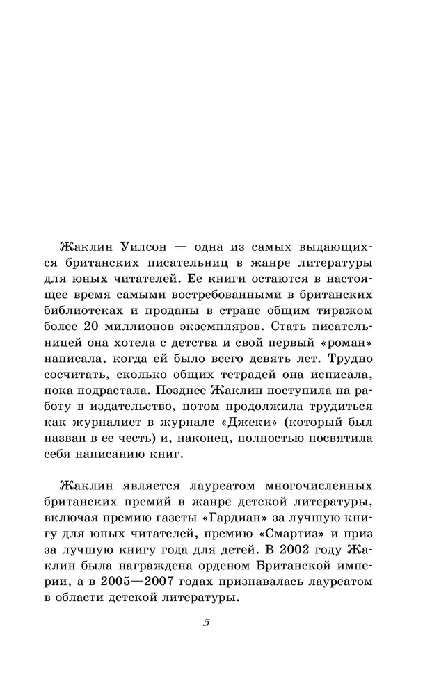 Жаклин Уилсон одна из самых известных современных английских писательниц, обладательница многих литературных наград и премий.