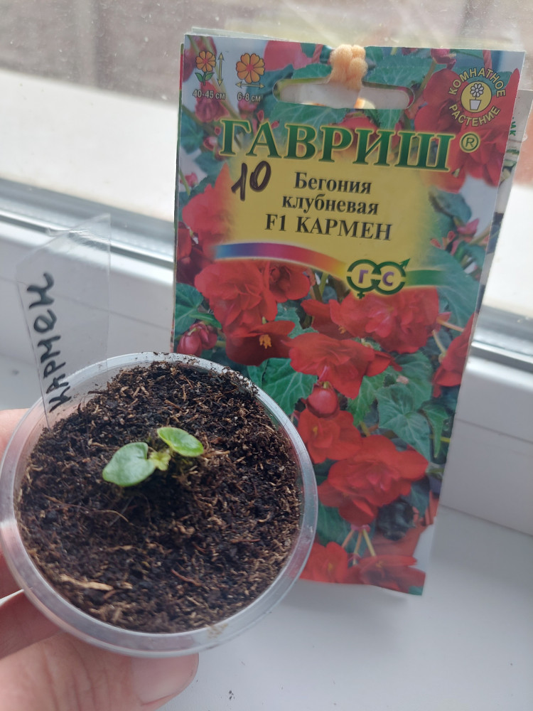 Гавриш Семена. Бегония «Кармен F1»В данный момент этот товар отсутствует в продаже. Возможно, у нас найдется аналогичный или похожий товар здесь. Серия: Комнатные цветы Бегония — одно из самых великолепных растений в комнатном цветоводстве. Цветки красивой формы, насыщенной яркой окраски. Стебли бегонии клубневой мясистые, листья большие. Период цветения- с мая по отябрь. На зиму растение впадает в период покоя и наземные части ее отмирают. она предпочитает плодородные почвы, со слегка кислой реакцией, светлые и слегка затененные помещения, температура в которых не должна превышать 23°C. Хорошо отзывается на подкормку минеральными и органическими удобрениями. полив умеренный. Переодически воздух вокруг растения нужно увлажнять, но следите, чтобы капли не попали на листья. Размножают клубневые бегонии семенами, клубнями, черенками. Самый эффективный способ размножения — семенной. посевы производят в начале в конце |