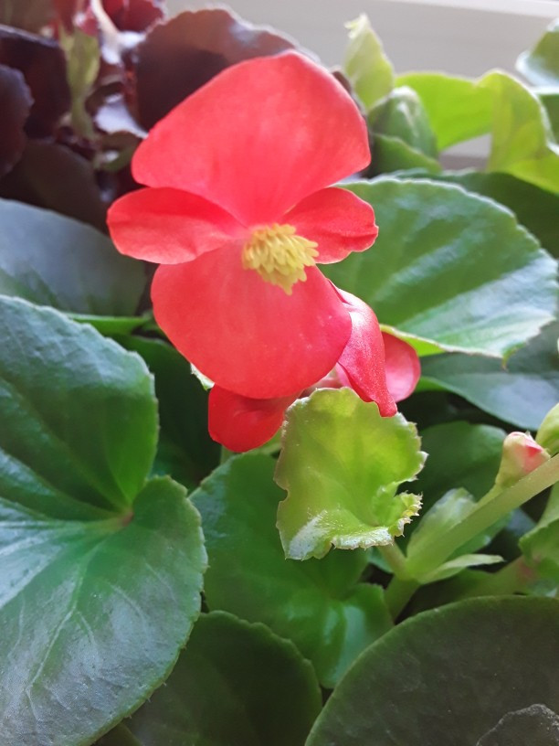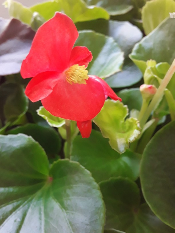 Красивый сорт бегонии с красными цветами.