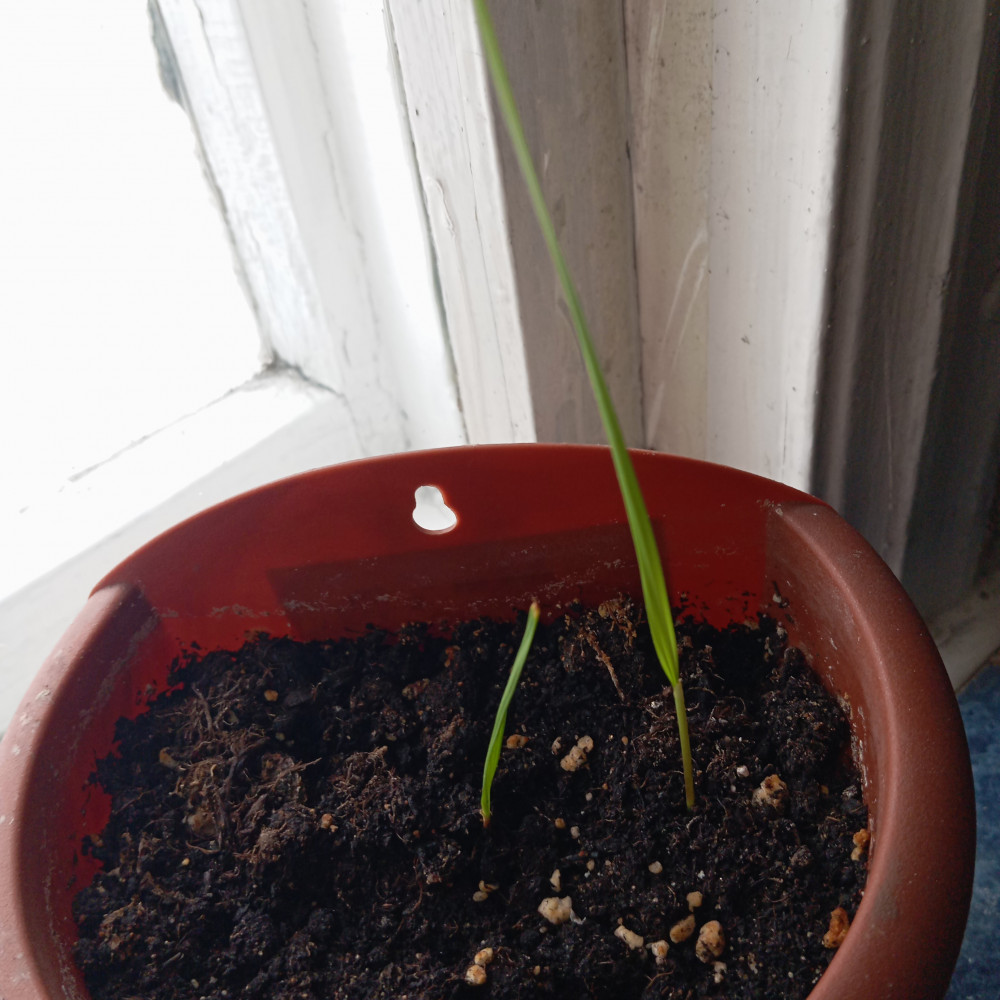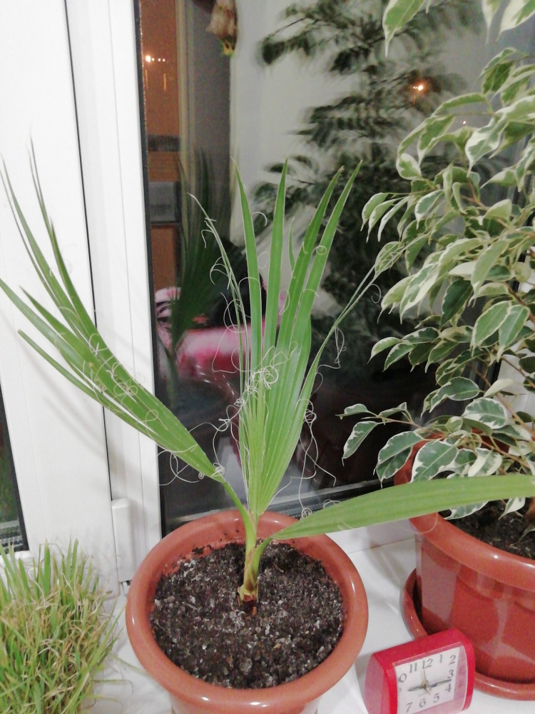 Из трех семян взошло 2, на фото моим пальмам почти год!