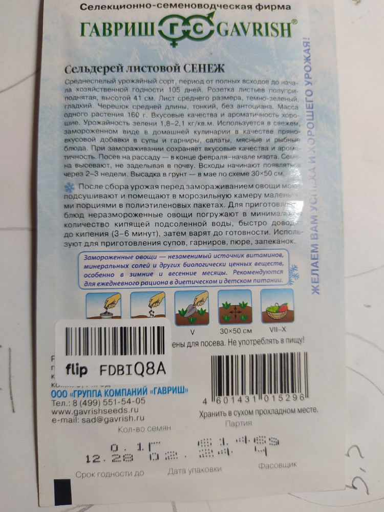 Гавриш Семена. Сельдерей листовой «Сенеж», 0,3 г+4 всхожесть быстрый рост
