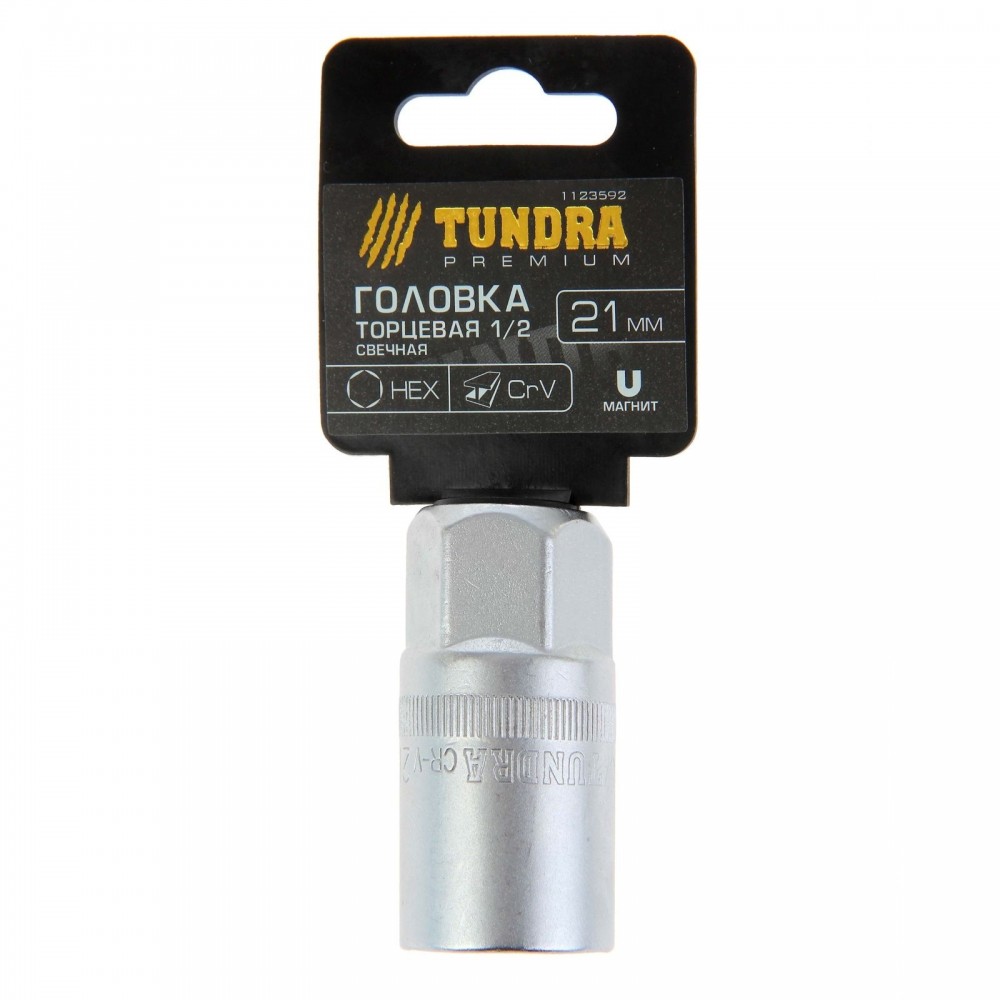 Tundra Головка торцевая свечная «TUNDRA premium» 6-гранная, 1/2", 21 мм, CrV-25% +47