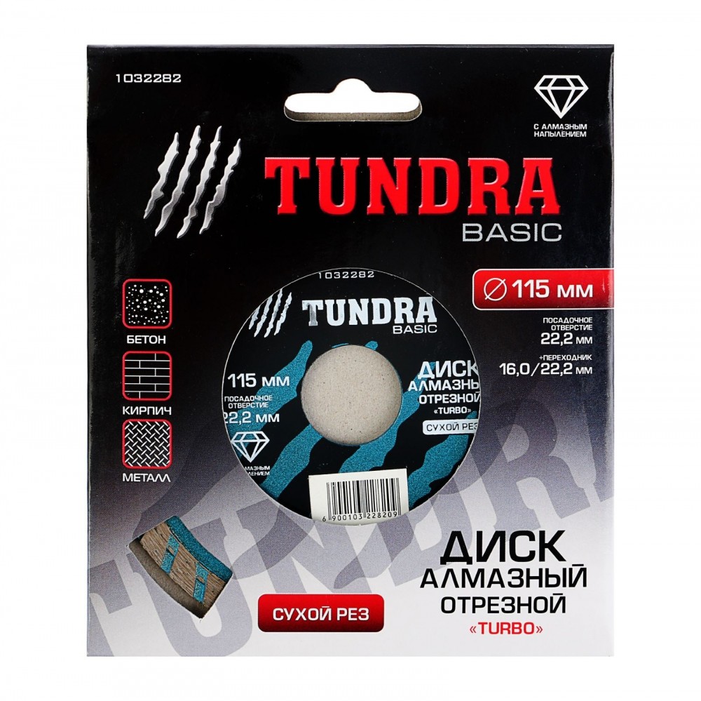 Tundra Диск алмазный отрезной «TUNDRA» Turbo сухой рез 115 х 22,2 мм, кольцо 16/22,2 мм-25% +47