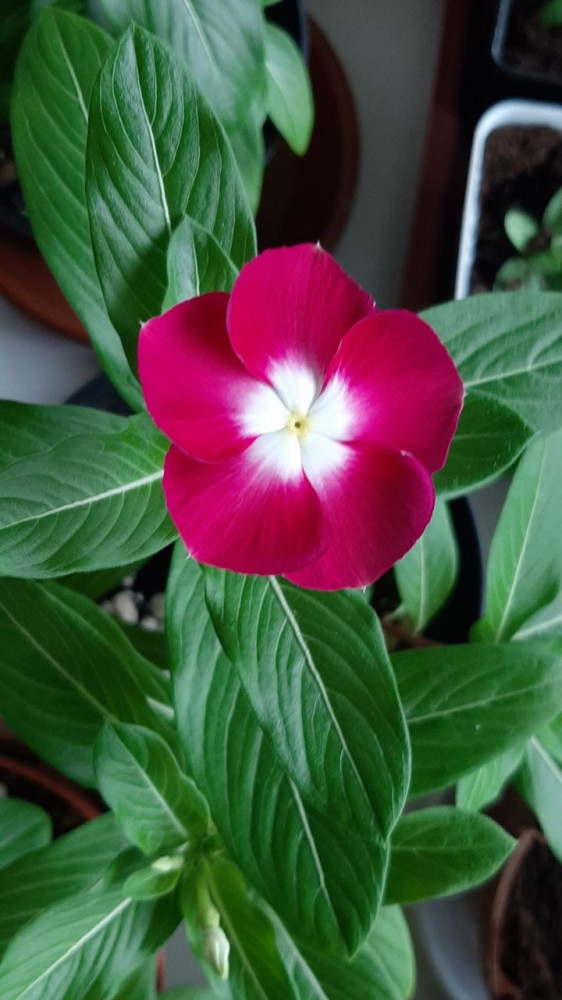 Из 21 семян (3 пакетика) взошли всего 11 штук. Я и не надеялась на хорошую всхожесть, красивые цвета всегда плохо всходят))) Цветёт красиво. Только сеять нужно раньше (в декабре и под лампами), катарантусу нужно много времени, чтобы разрастись.