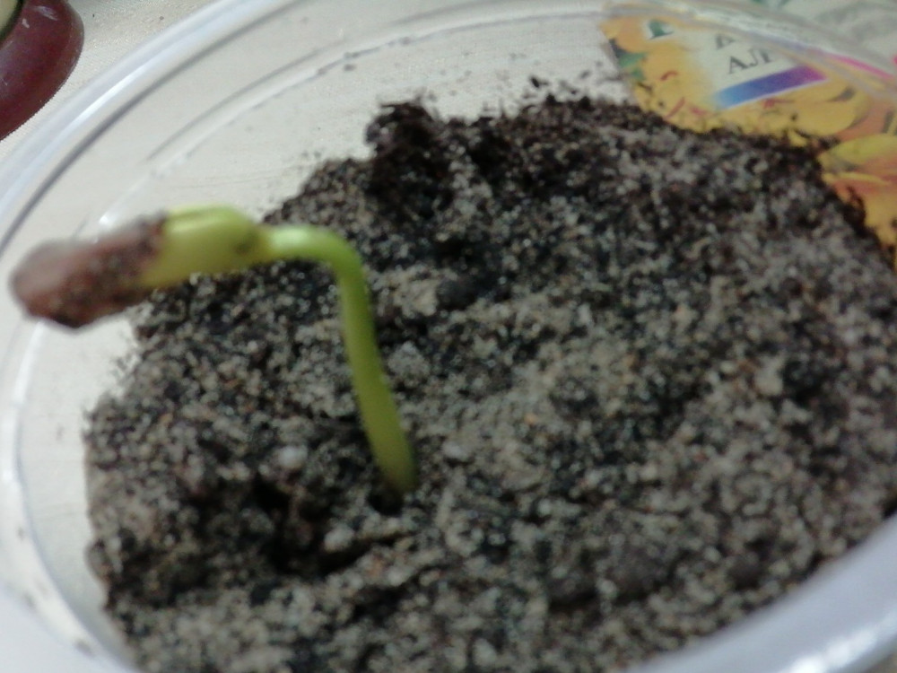 Взошли через 3 дня, все три семени, ни в коем случае не замачивайте и не скарифицируйте - сгниют. Семена хоть и большие, и оболочка крепкая, но всходят быстро. Глубоко не закапывать - примерно 0,5 см, грунт немного увлажнить.