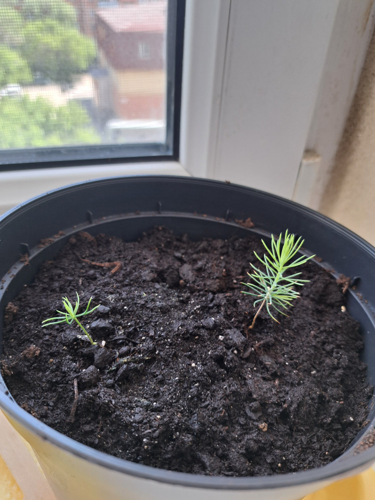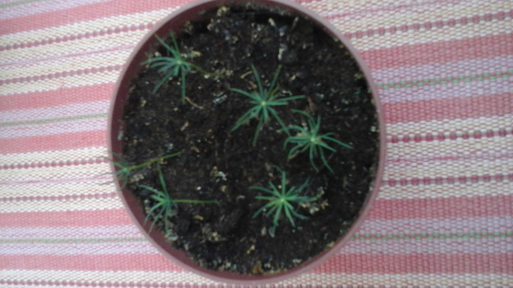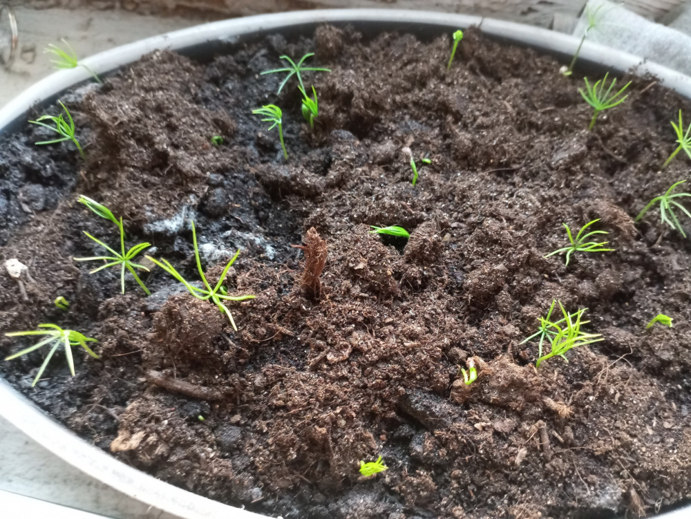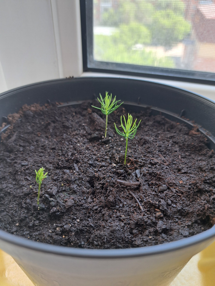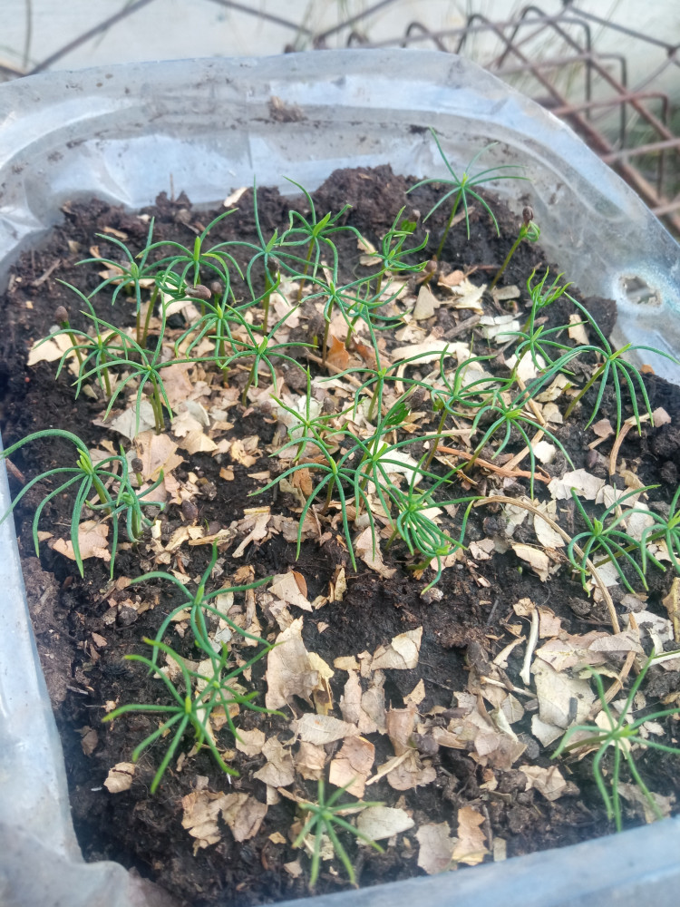 маленькие ёлочки одномесячные, а побольше 3-месячные. сажала дважды, взрастает примерно 5-6 ростков (в первой посадке они случайно померли😨)