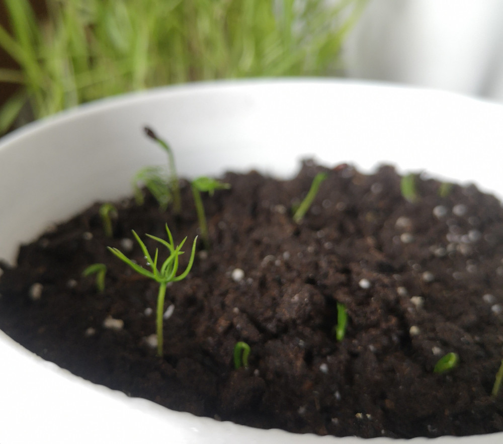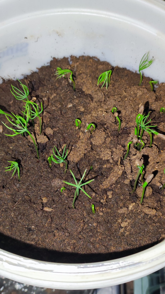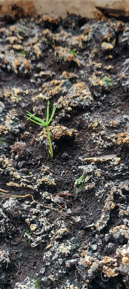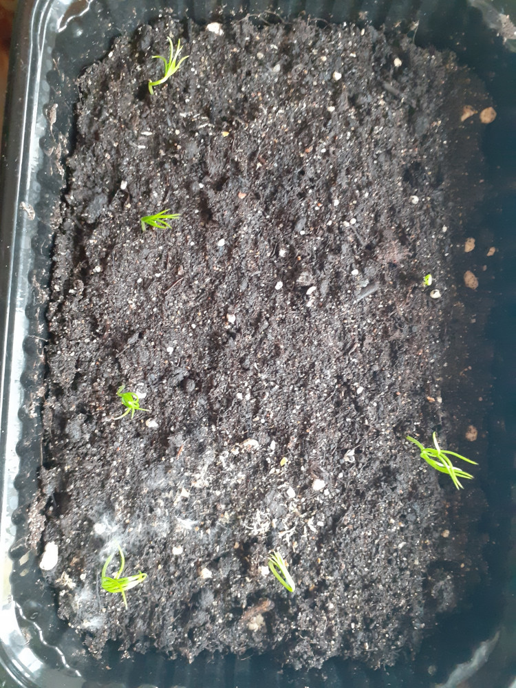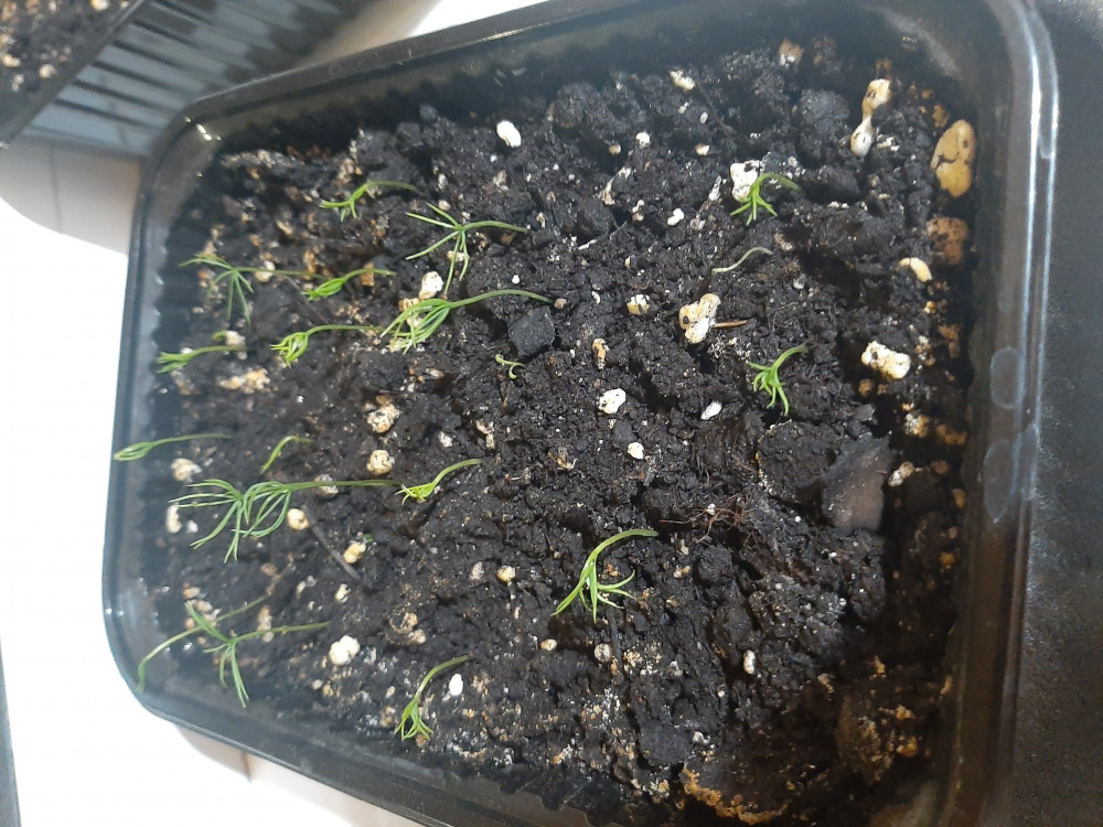 маленькие ёлочки одномесячные, а побольше 3-месячные. сажала дважды, взрастает примерно 5-6 ростков (в первой посадке они случайно померли😨)