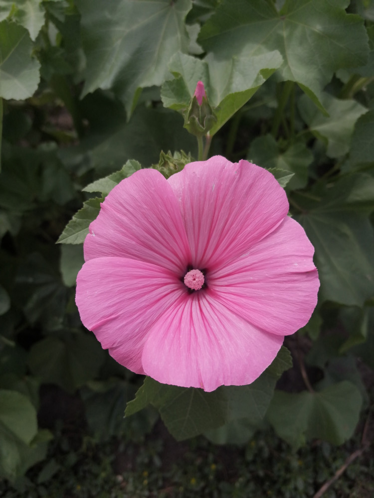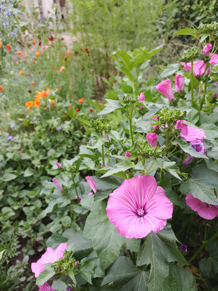 Красивая, крупная лаватера. Посажена на рассаду в начале мая, к середине июля расцвела
