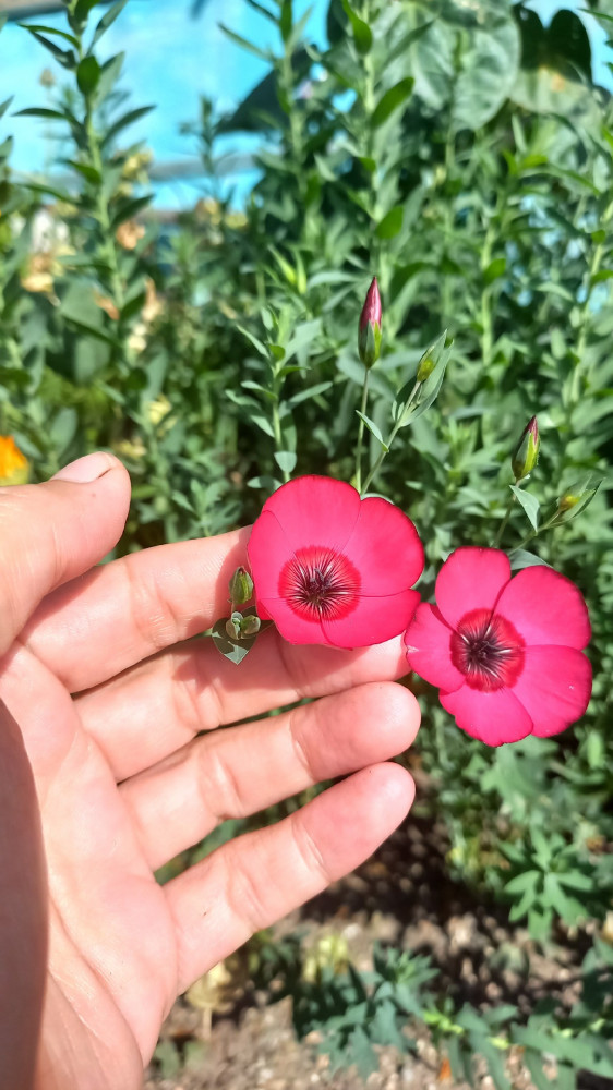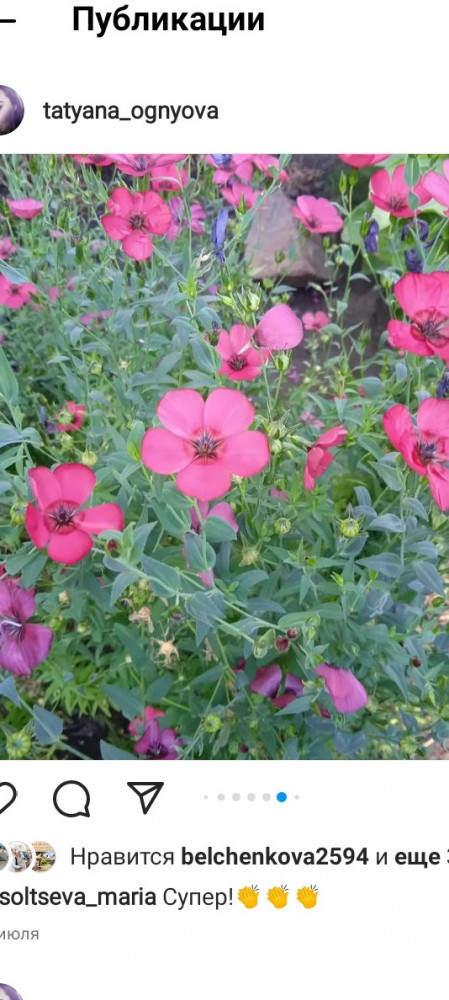 Хочу рассказать про другой Лен Красный крупноцветковый. Понимаю, что пишу не там где положено, не нашла фото своего. Семена проросли в открытом грунте дружно и обильно цвели.