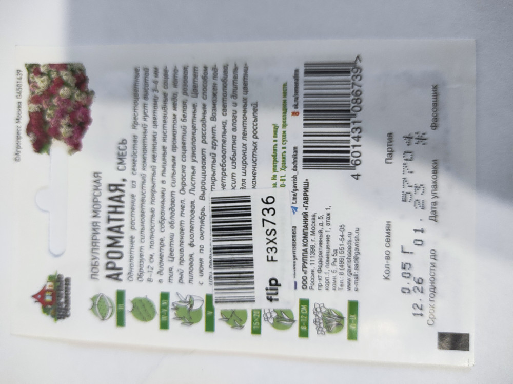 Гавриш Семена. Лобулярия «Ароматный микс»+3 высокая всхожесть много семян