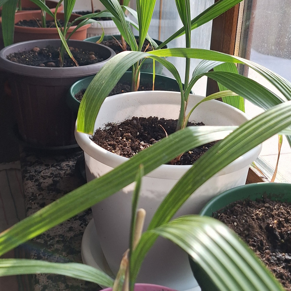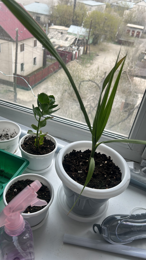 сажала пальму санта барбара робуста пришло 3семечка сажала по инструкции взошли два сейчас и 4 листочка 4 листок стал веерообразный довольна