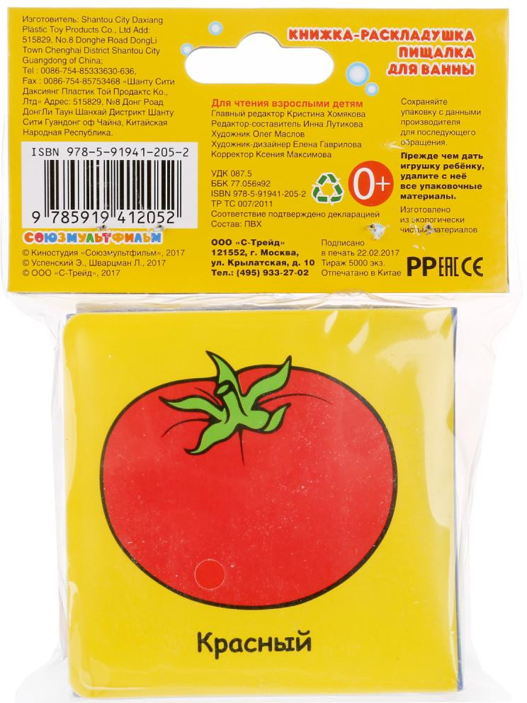 Заказала сыну, чтоб было веселее купаться! Сидя в ванночке, с удовольствием играет, рассматривает каждую картинку! Нажимает на чебурашку, нравится звук пищалки! В общем, книжкой остались довольны! Как идем купаться, берем ее с собой! Размеры, рисунки, цвета все на 5+!!! Рекомендую!