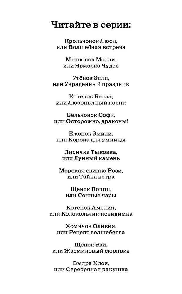 Восьмая книга из серии "Лес Дружбы". Очень легкие для самостоятельного чтения, не перегруженные, сюжет есть интересный. Всегда милые зверята и дружные девочки.
