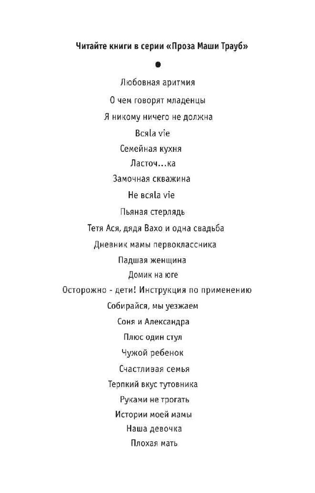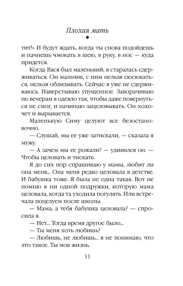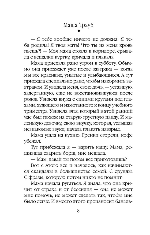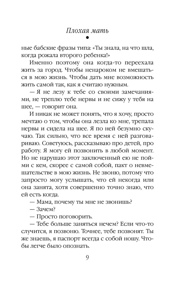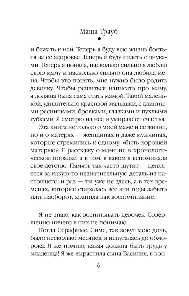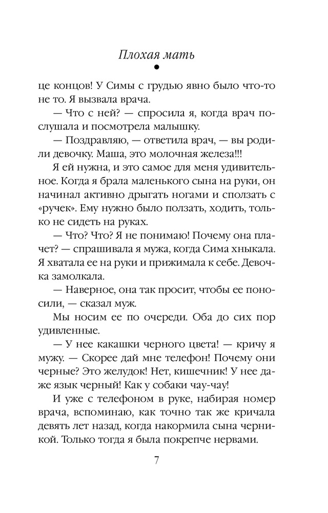 Плохая матьВ данный момент этот товар отсутствует в продаже. Возможно, у нас найдется аналогичный или похожий товар здесь. Серия: Проза Маши Трауб (обложка) Эту книгу я писала с оголенными нервами, потому что была мамой новорожденной девочки. Она о самой главной, самой большой любви в жизни женщины — о любви к ребенку. |