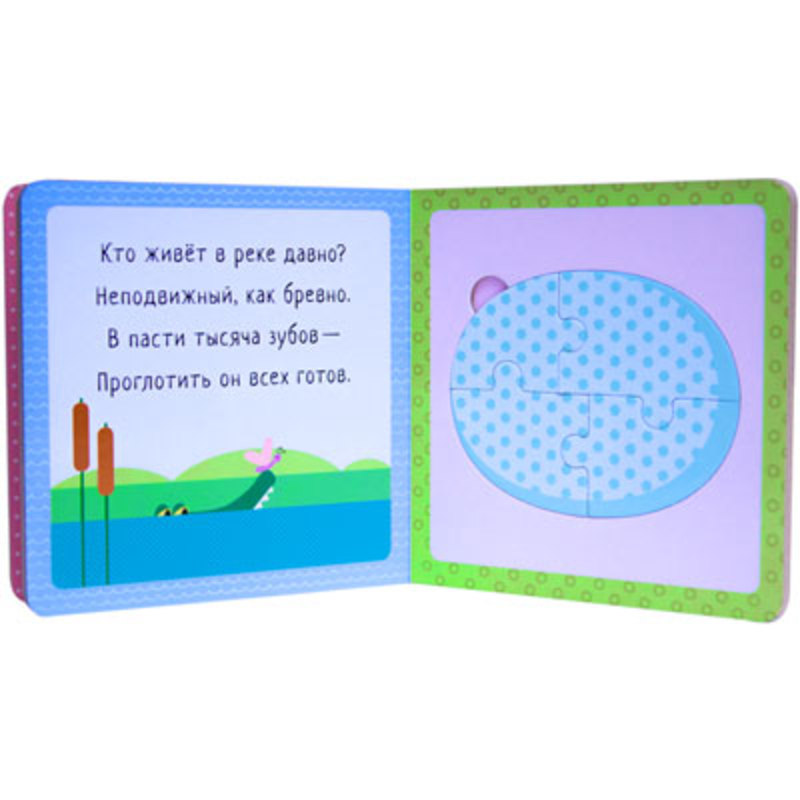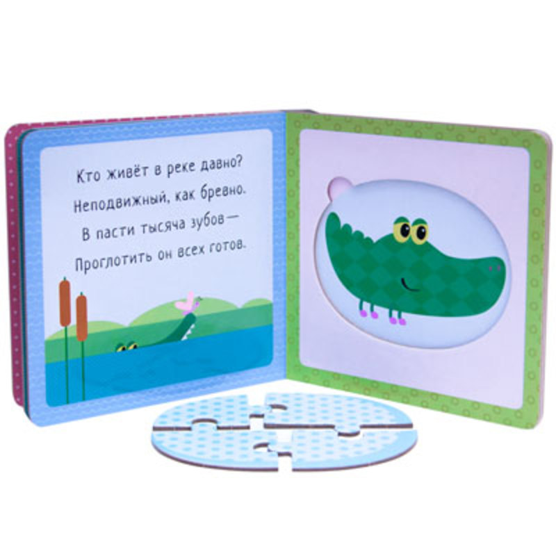 Книга не очень понравилась, состоит из 4 разворотов, стишок-загадка и пазл-отгадка. 2 пазла очень плотные, даже взрослому тяжело поставить пазлы на место. Картинки мультяшные, далекие от реальности.