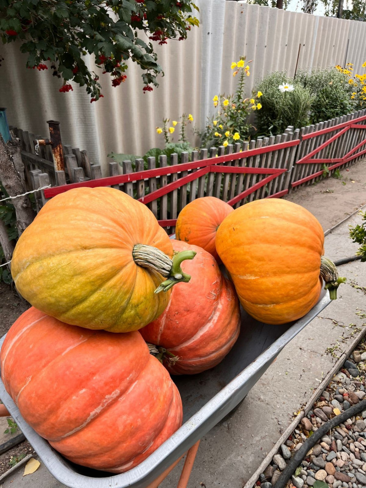 На кусте плодов немного, я сажу два, получаю 5-6 тыкв. Зато каких! по 14- 15 кг!