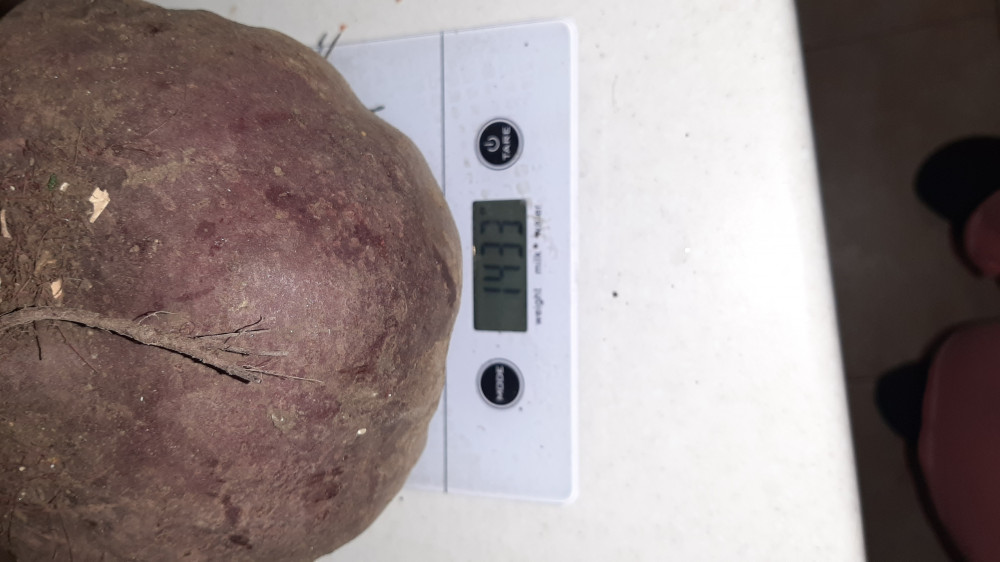 Урожай хороший, свекла взошла, по размеру чуть больше среднего, вкус обычный